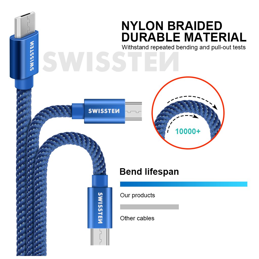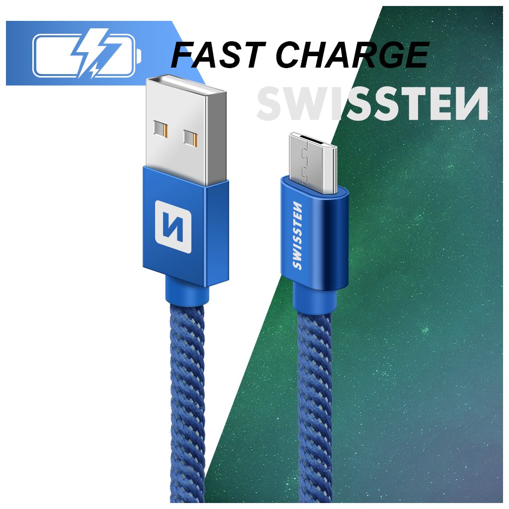 Dátový kábel swissten textilný usb / micro usb 2,0 m modrý