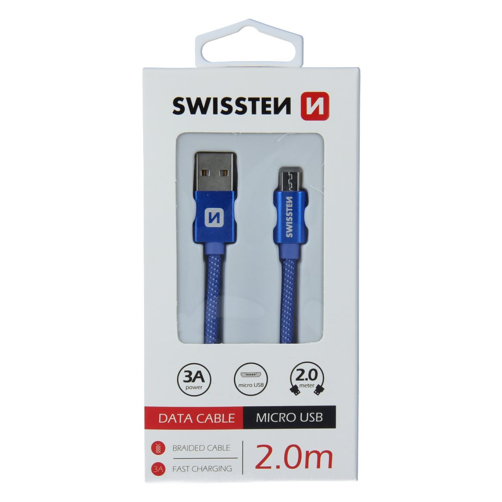 Dátový kábel Swissten USB/micro USB 2,0 m - Modrý