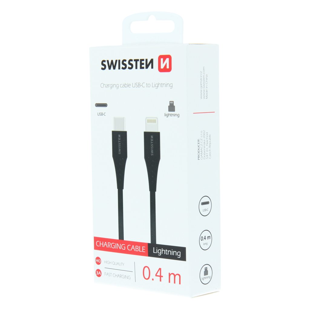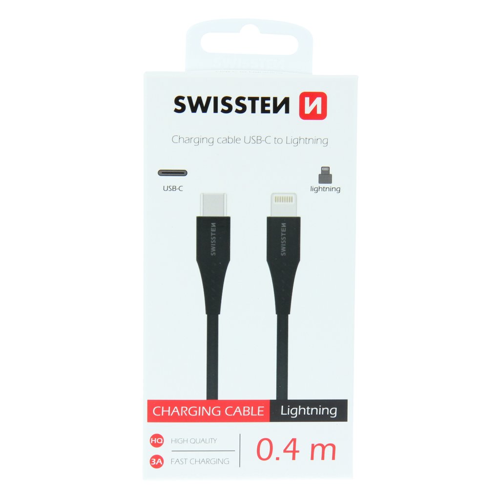 Dátový kábel swissten usb-c / lightning 0,4 m čierny
