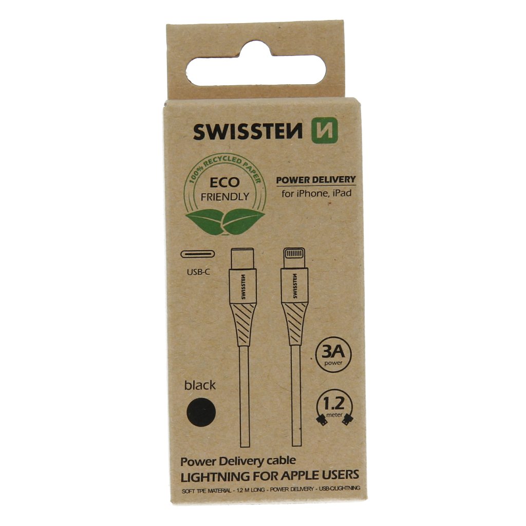 Dátový kábel swissten usb-c/lightning čierny 1,2 m (ekologické balenie)