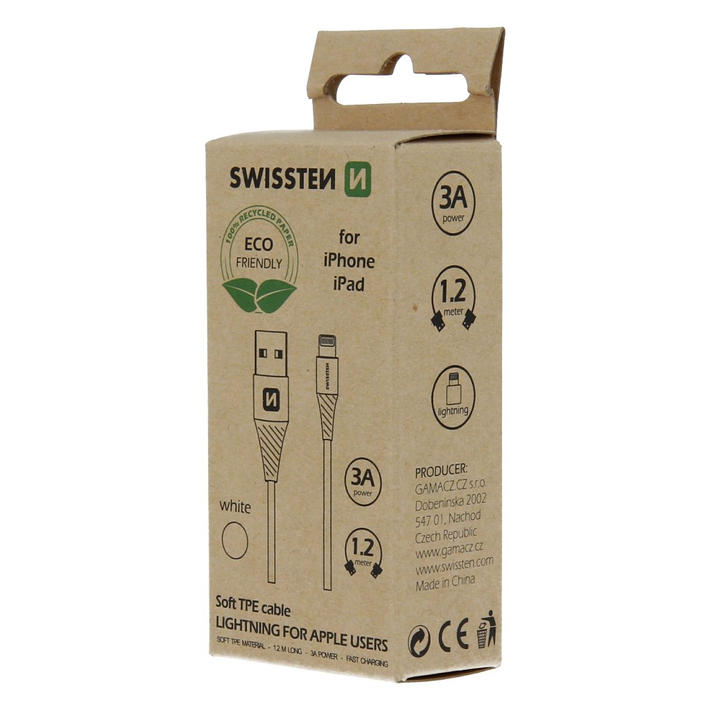 Dátový kábel swissten usb/lightning biely 1,2 m (ekologické balenie)