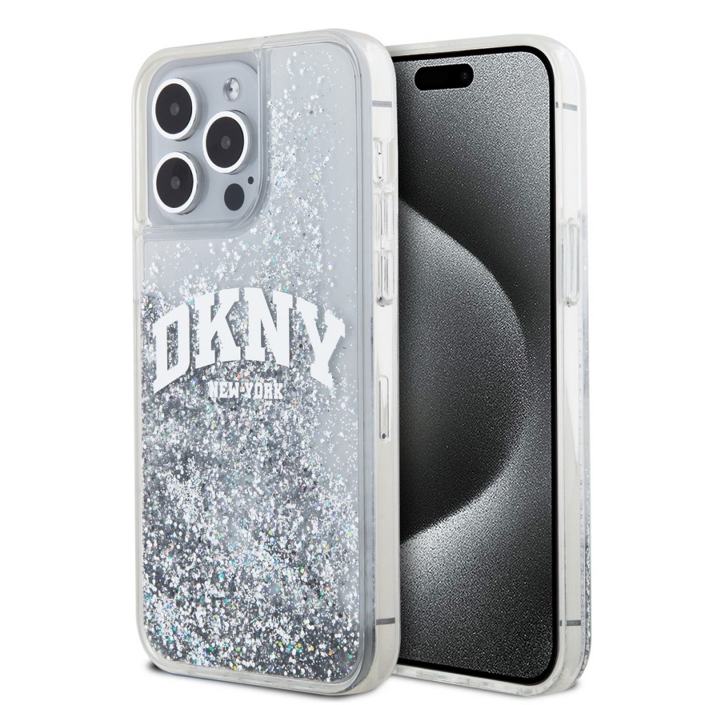 DKNY Liquid Glitter Arch Logo Zadný kryt pre iPhone 15 Pro Max Transparent