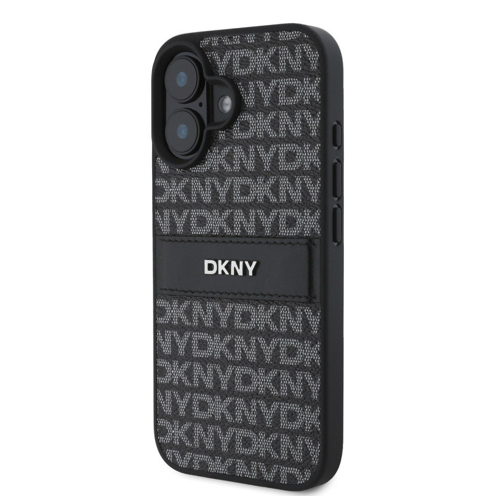 Zadný kryt DKNY PU Leather Repeat Pattern Tonal Stripe pre iPhone 16 Plus (čierny)Zadný kryt DKNY PU Leather Repeat Pattern Tonal Stripe pre iPhone 16 Plus (čierny)