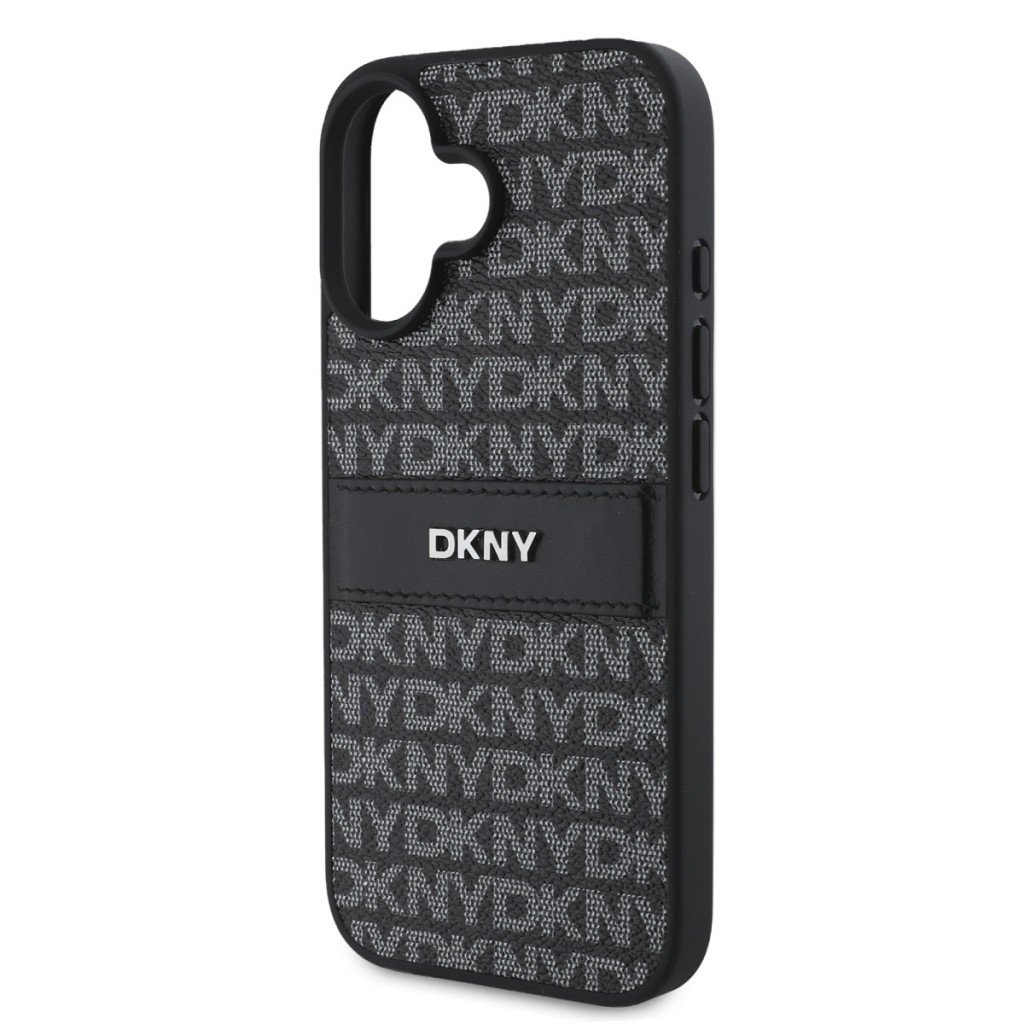 Zadný kryt DKNY PU Leather Repeat Pattern Tonal Stripe pre iPhone 16 Plus Black