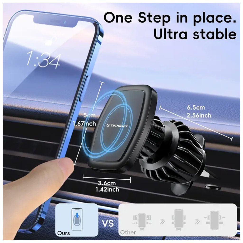 Predstavujeme vám magnetický držák do auta Techsuit AirFix (S2) v elegantnom čiernom prevedení, ktorý je navrhnutý pre maximálnu stabilitu a pohodlie počas vašich ciest. Tento držák sa stane nepostrádateľným doplnkom pre každého vodiča, ktorý ocení bezpečné a jednoduché používanie telefónu za jazdy.