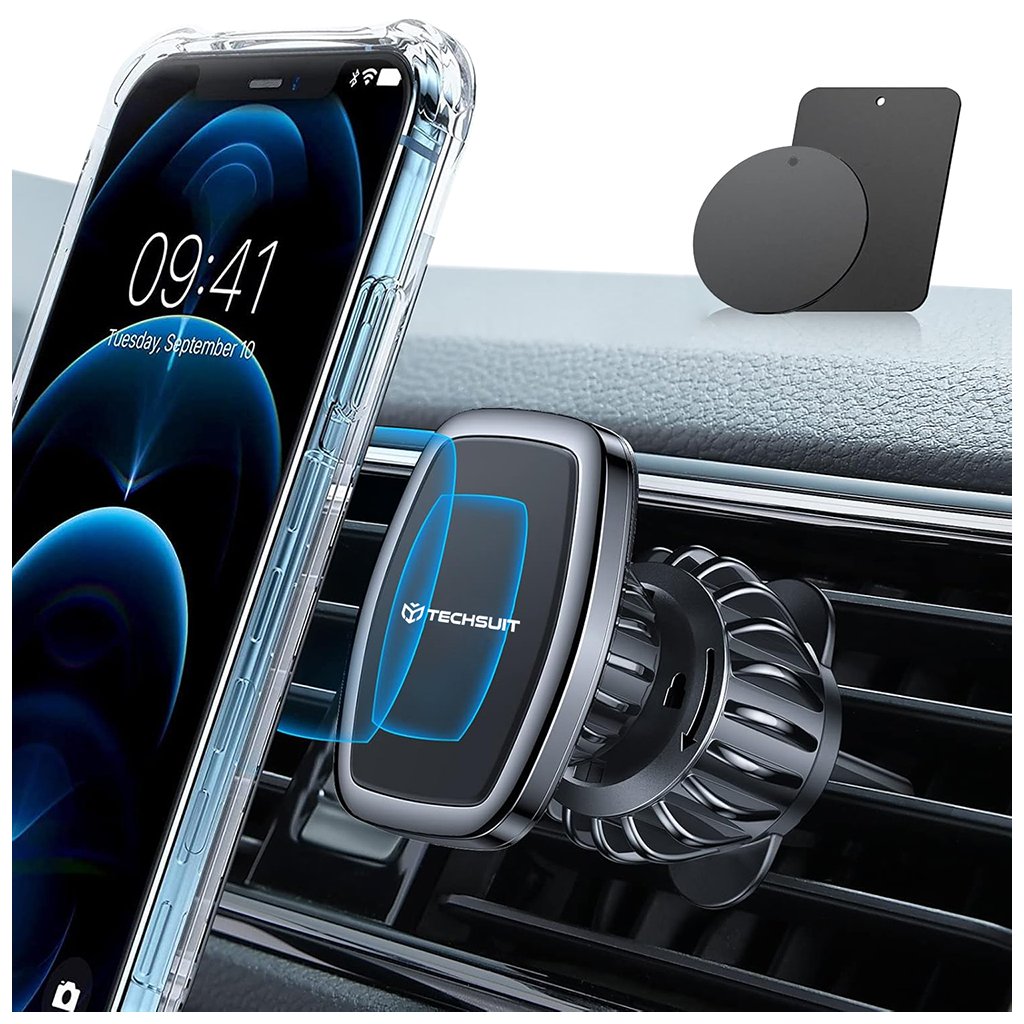 Držák do auta Techsuit AirFix (S2) s kovovými destičkami čierny