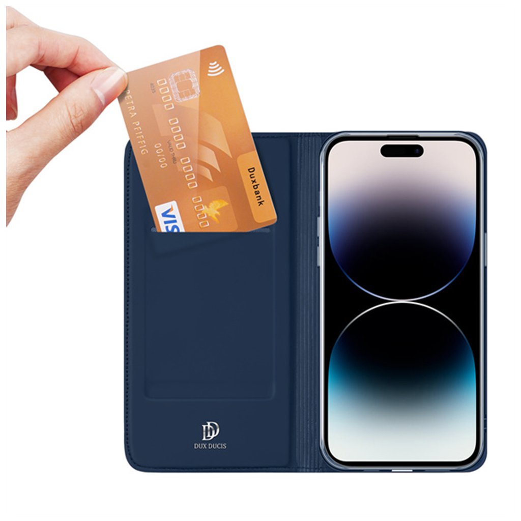 Predstavujeme vám Dux Ducis Skin Pro, elegantné flipové puzdro (typu kniha) v klasickej čiernej farbe, navrhnuté pre maximálnu ochranu a štýl vášho iPhone 14 Pro Max.
