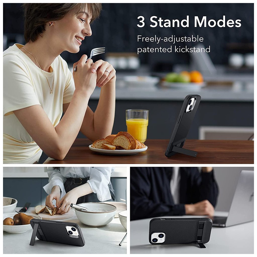 Kryt ESR Air Shield Boost Kickstand sa pýši premysleným dizajnom, ktorý nielen skvele vyzerá, ale predovšetkým chráni. Jeho zadná strana je opatrená protišmykovou drážkovanou textúrou, ktorá zaisťuje pohodlný a pevný úchop, minimalizujúci riziko vykĺznutia telefónu z ruky. Integrovaný, patentovaný stojan na zadnej strane umožňuje nastavenie telefónu do troch rôznych polôh, čo je ideálne pre sledovanie videí, videohovory alebo prezeranie obsahu v režime na šírku aj na výšku.