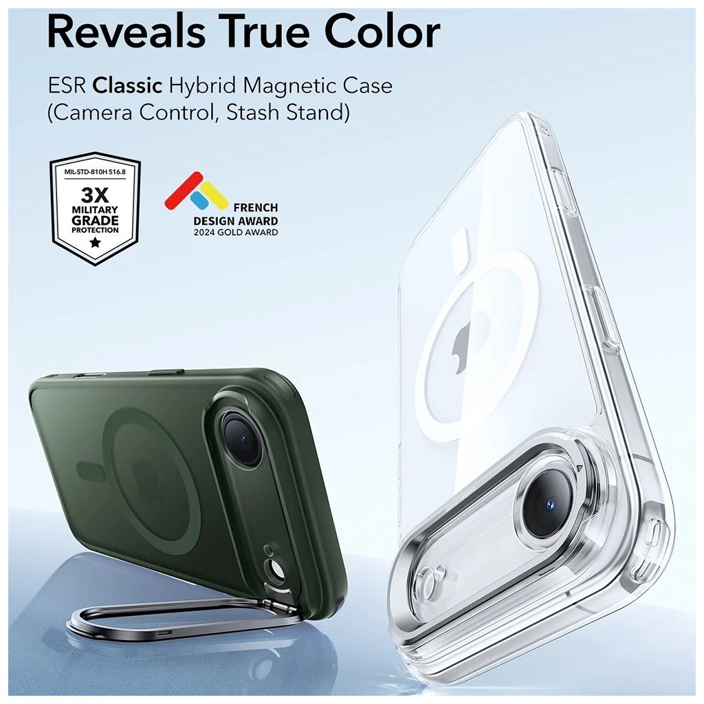 Predstavujeme ESR Classic Hybrid HaloLock Kickstand, prémiové ochranné puzdro navrhnuté špeciálne pre iPhone 17 Air v elegantnom odtieni Zelená Hmla. Toto puzdro dokonale kombinuje špičkovú ochranu, inovatívnu funkčnosť a sofistikovaný dizajn, aby váš telefón zostal v bezpečí a zároveň ponúkal maximálny užívateľský komfort.