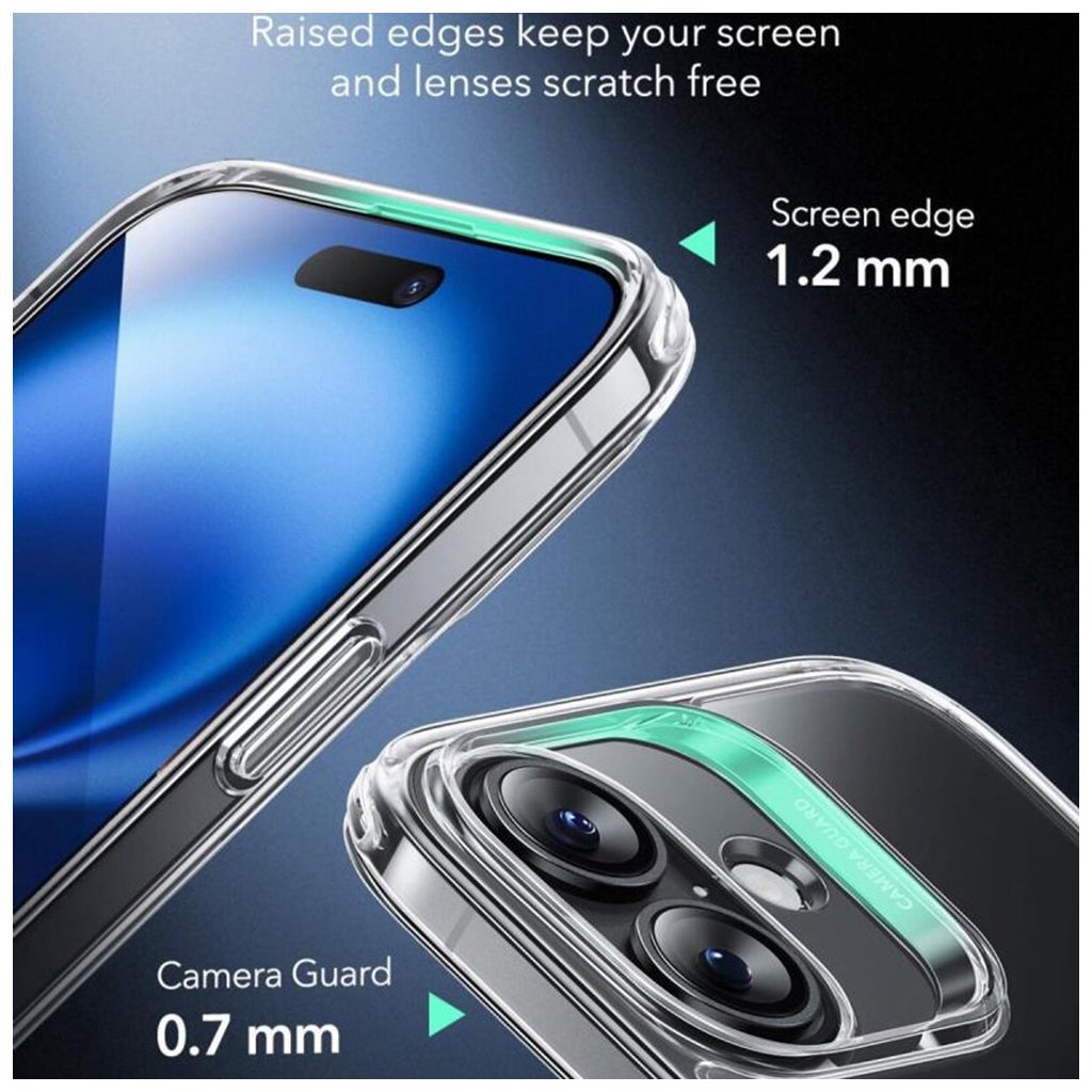 Tento priehľadný kryt je navrhnutý tak, aby váš iPhone 16 zostal v bezpečí za všetkých okolností. Vďaka vojenskej certifikácii MIL-STD-810H 516.8 a testovanej odolnosti proti pádům z výšky až 3,3 metra (11 ft) sa nemusíte obávať každodenných nástrah. Klíčom k tejto ochrane sú tlmiace rohy Air Guard, ktoré efektívne absorbujú nárazy.