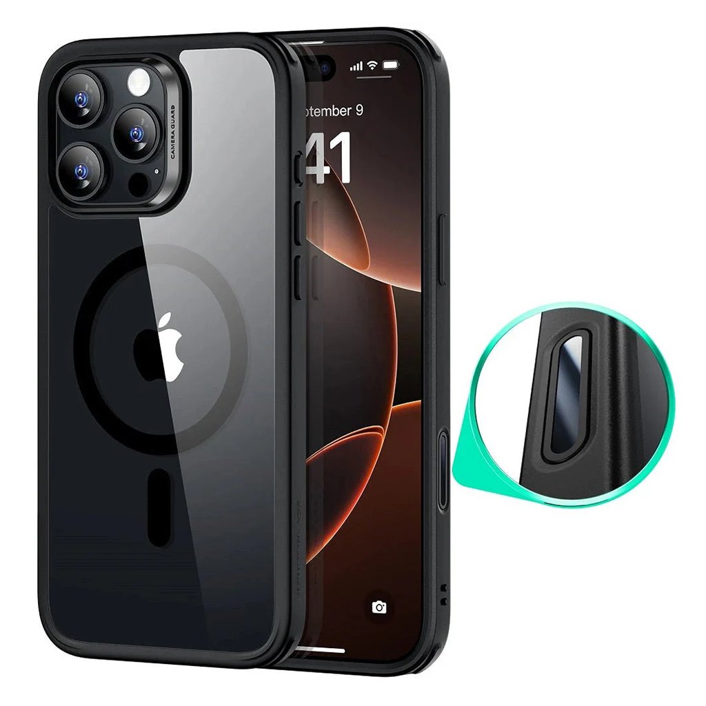 Predstavujeme ESR Classic Hybrid HaloLock, prémiové ochranné puzdro navrhnuté špeciálne pre iPhone 16 Pro Max. Toto puzdro v elegantnej kombinácii čírej zadnej strany a čiernych okrajov dokonale podčiarkuje originálny dizajn vášho telefónu a zároveň mu poskytuje špičkovú ochranu.