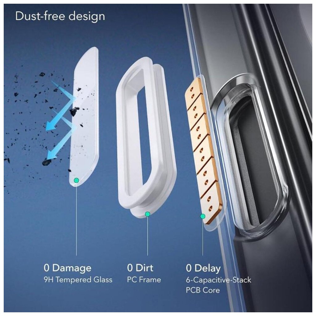 - Bezprašný dizajn: Pomáha udržiavať váš telefón v perfektnom stave.