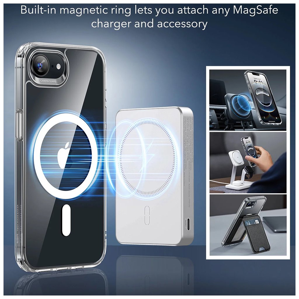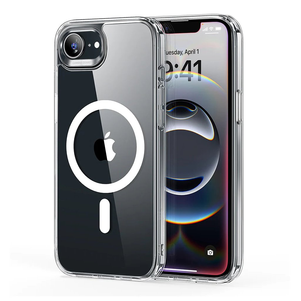 - Puzdro ESR Classic Hybrid HaloLock sa pýši krištáľovo čistým dizajnom, ktorý nechá vyniknúť elegantné línie a originálnu farbu vášho iPhone 16e.
