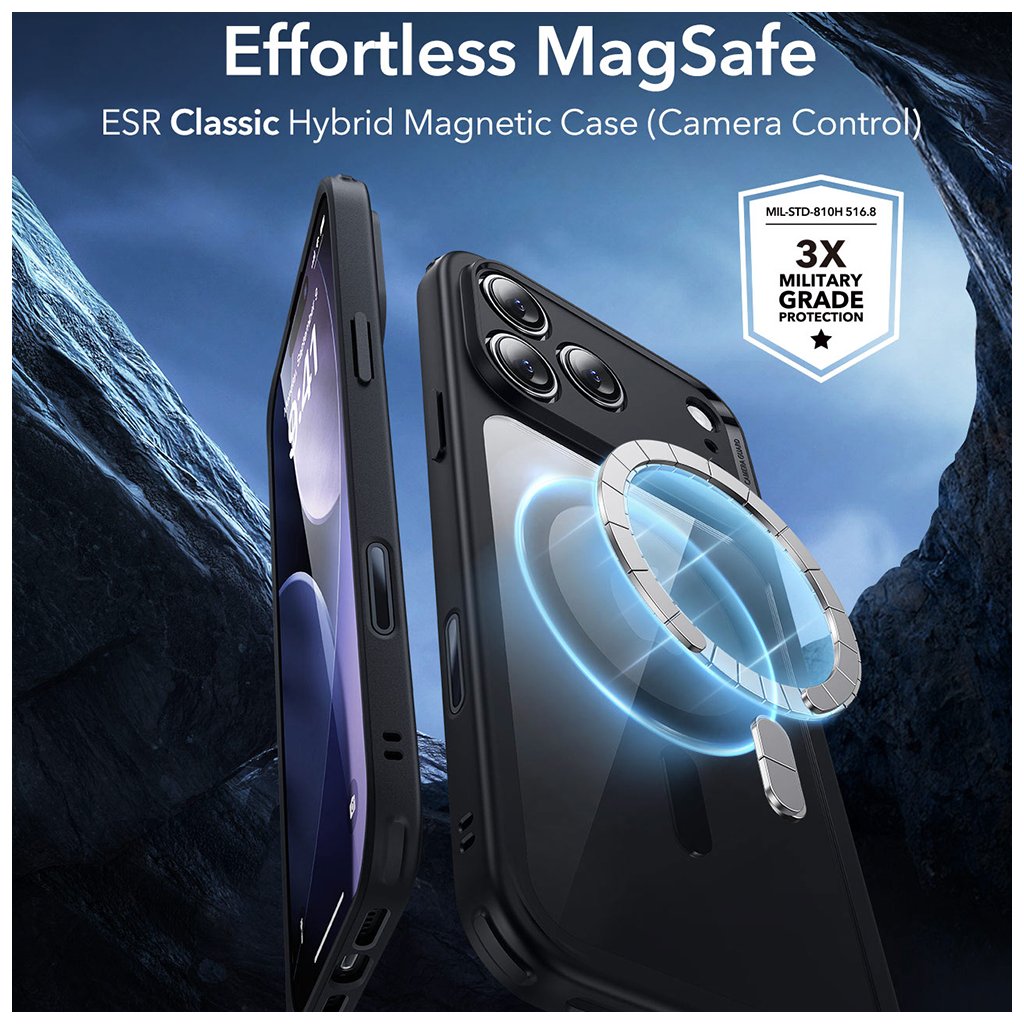 ESR Classic Hybrid HaloLock pre iPhone 17 Pro – čierna priehľadná
