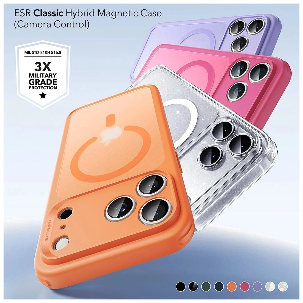 - Krištáľovo čistý dizajn: Puzdro ESR Classic Hybrid HaloLock sa pýši dizajnom, ktorý nechá vyniknúť originálnej farbe vášho iPhone 17 Pro.