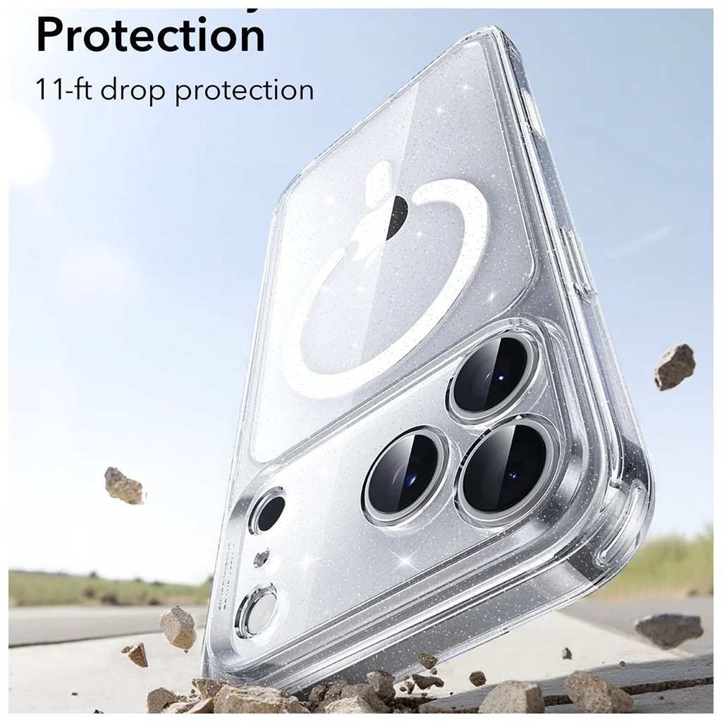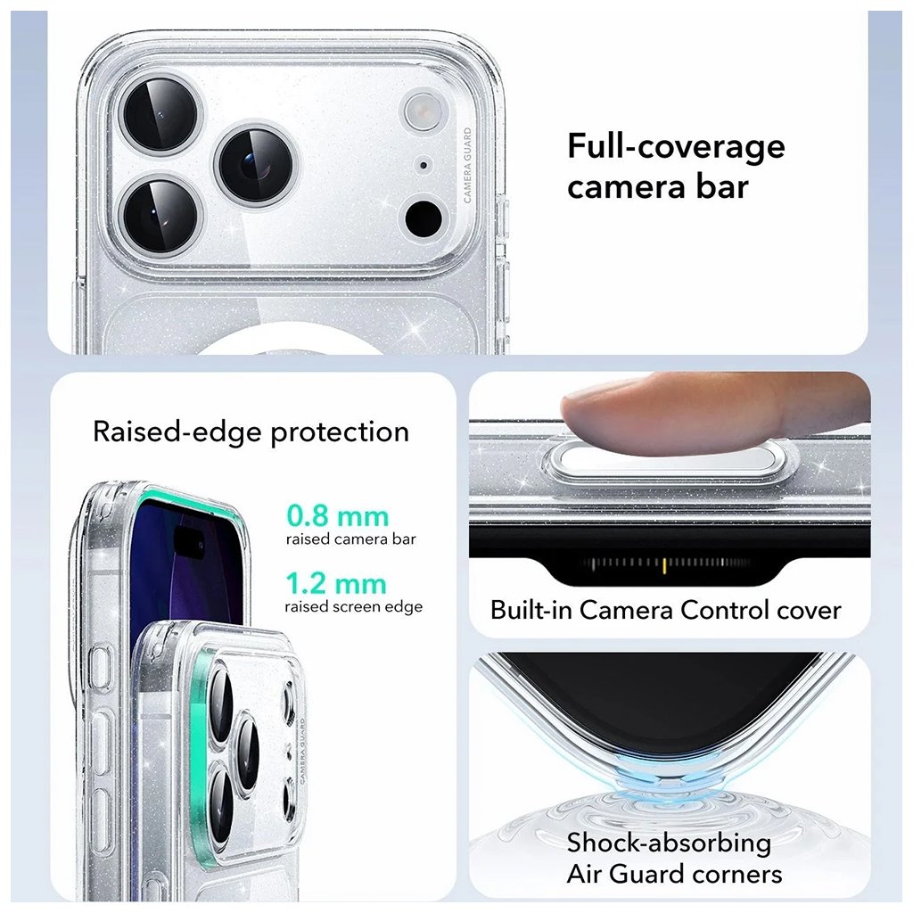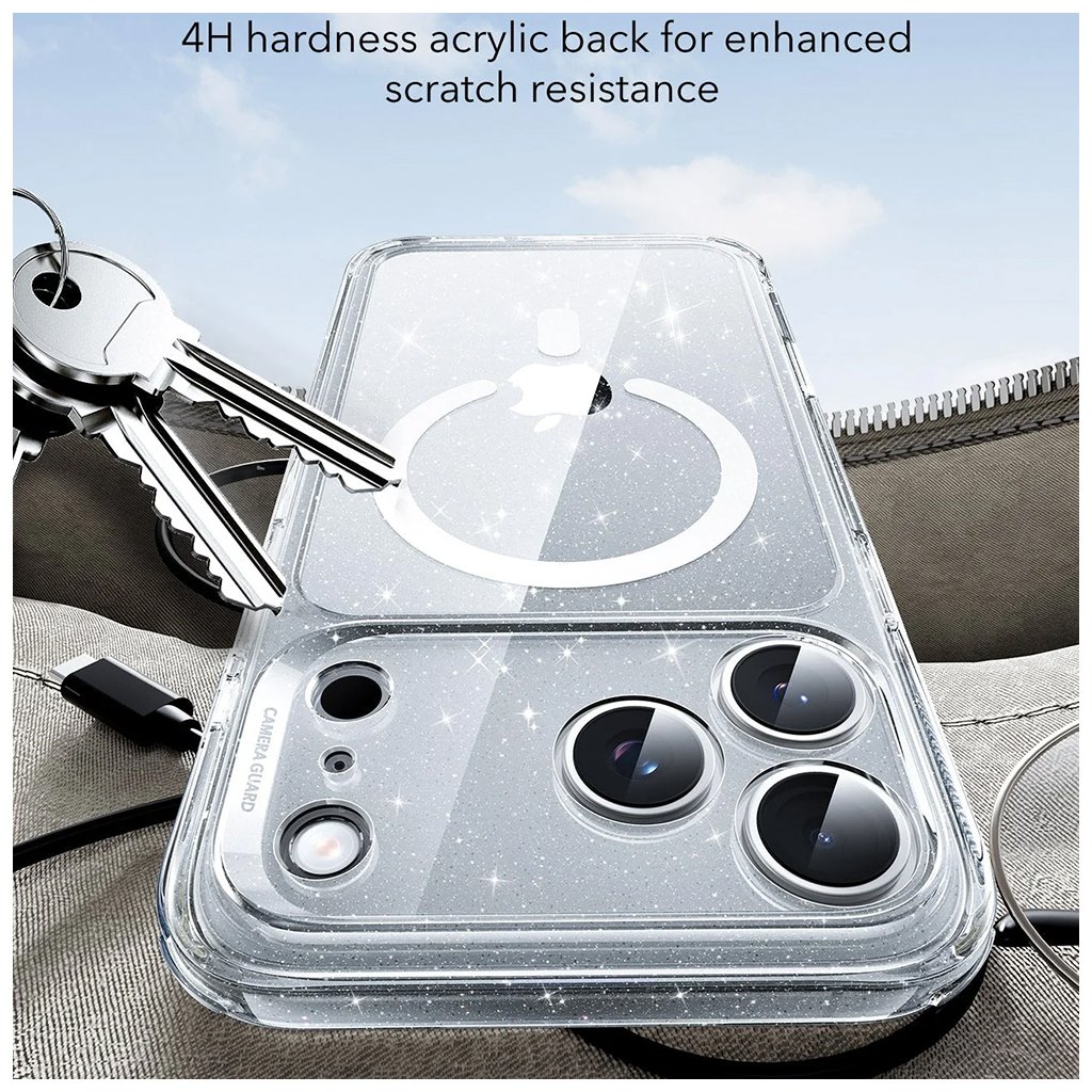 ESR Classic Hybrid HaloLock pre iPhone 17 Pro číre trblietavé puzdro