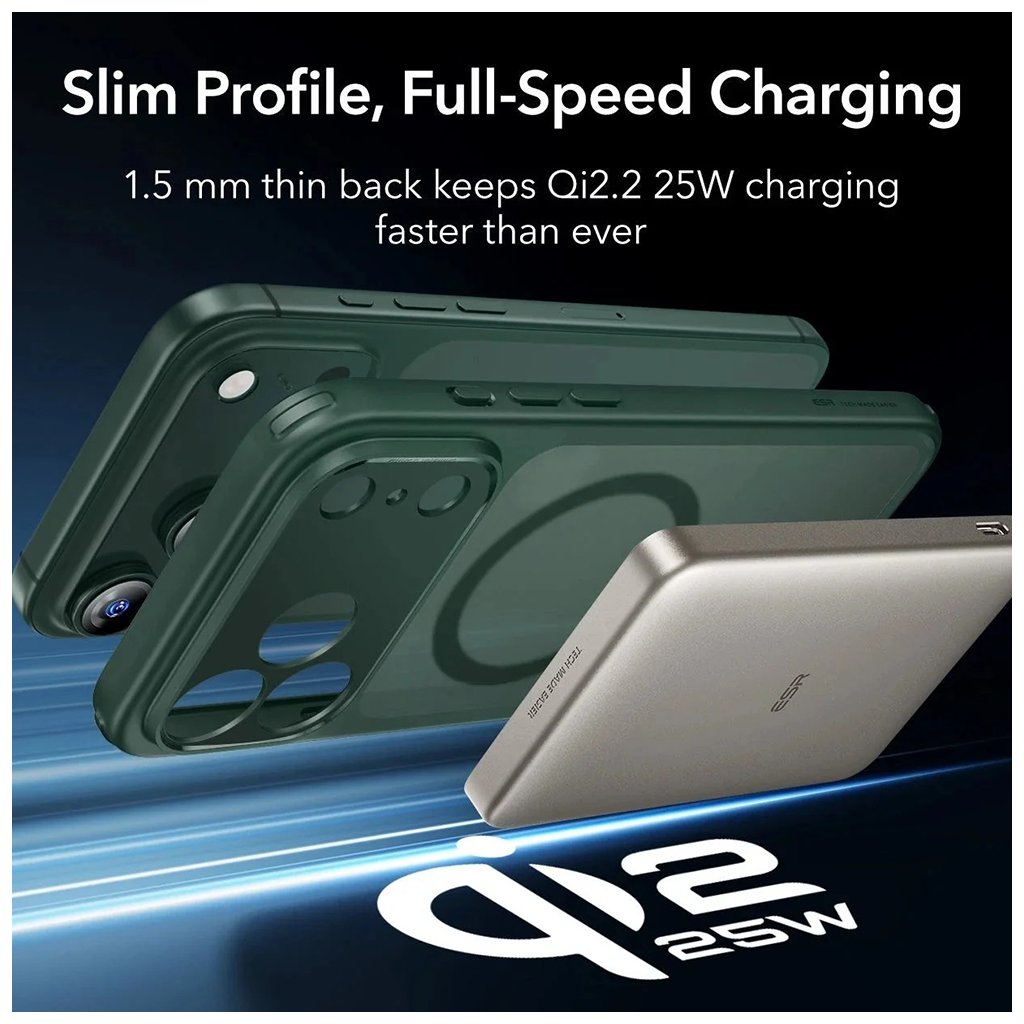 ESR je globálna technologická značka založená v roku 2009 s jasným poslaním: "Uľahčovať používanie technológií". Spoločnosť sa rýchlo etablovala ako jeden z popredných inovátorov v oblasti mobilného príslušenstva, a to vďaka silnému zameraniu na výskum, vývoj a užívateľsky prívetivý dizajn. ESR sa preslávilo predovšetkým ako priekopník v ekosystéme MagSafe, kde nastavuje nové štandardy funkčnosti a spoľahlivosti. Ich patentovaný systém **HaloLock™** predstavuje ekvivalent MagSafe, avšak často s výrazne silnejšími magnetmi pre bezpečnejšie a stabilnejšie uchytenie.Dizajn a parametre produktu