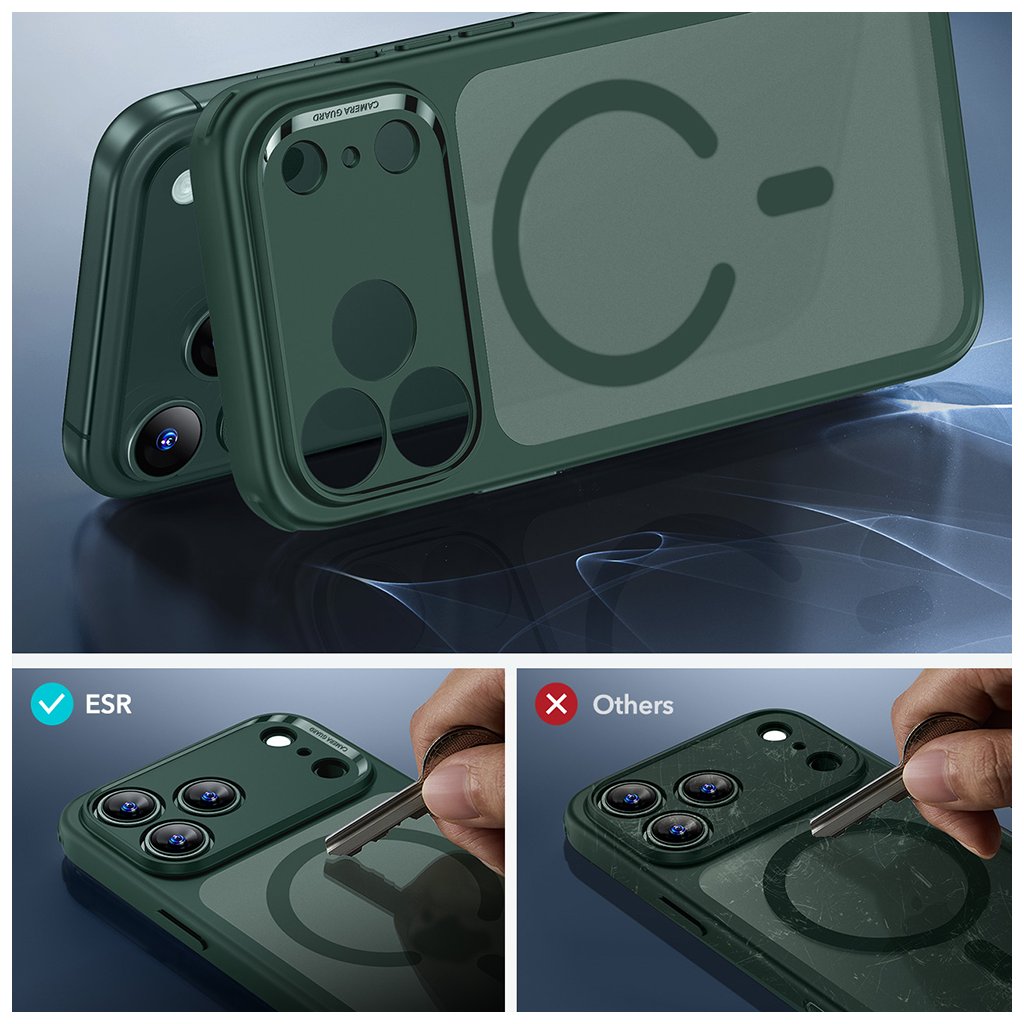 ESR je globálna technologická značka založená v roku 2009 s jasným poslaním: "Uľahčovať používanie technológií". Spoločnosť sa rýchlo stala jedným z popredných inovátorov v oblasti mobilného príslušenstva, a to vďaka silnému zameraniu na výskum, vývoj a používateľsky prívetivý dizajn. Hoci je ich portfólio široké (vrátane špičkových ochranných skiel), ESR sa preslávilo predovšetkým ako priekopník v ekosystéme MagSafe, kde nastavujú nové štandardy funkčnosti a spoľahlivosti. Kryty ESR sú navrhnuté s dôrazom na praktickosť. Ich absolútnou dominanciou je patentovaný systém HaloLock™, ktorý predstavuje ekvivalent MagSafe, avšak často s výrazne silnejšími magnetmi pre bezpečnejšie uchytenie. Najobľúbenejšia séria Classic Hybrid kombinuje krištáľovo čisté chrbty odolné proti žltnutiu s vojenskou ochranou proti pádům.