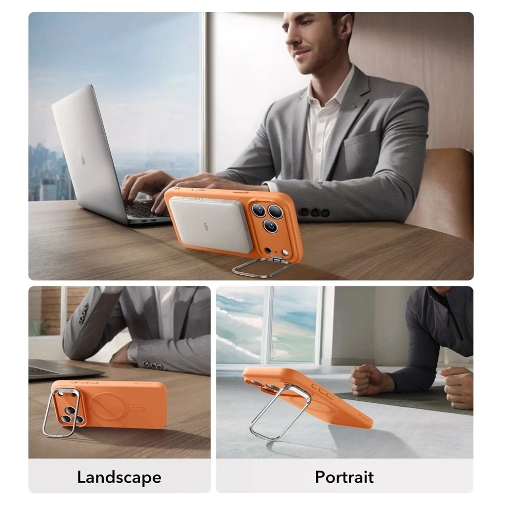 ESR Cloud Soft HaloLock Kickstand pre iPhone 17 Pro oranžový