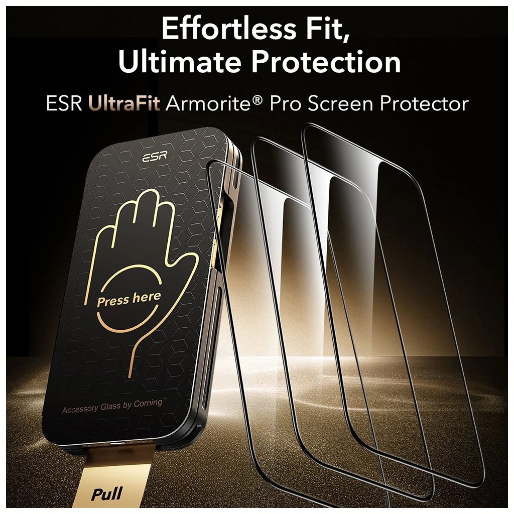 ESR Corning Gorilla Glass UltraFit (3 pack) pre iPhone 17 Pro Max čierne ESR (Electronic Silk Road) je globálna značka, založená v roku 2009, ktorá sa rýchlo stala popredným svetovým dodávateľom príslušenstva pre mobilné zariadenia. Filozofiou ESR je zjednodušovať a vylepšovať moderné technológie, aby boli dostupnejšie a pohodlnejšie pre každodenné použitie. Spoločnosť si zakladá na neustálej inovácii, čo dokazujú získané patenty a prestížne dizajnové ocenenia. Dôraz je kladený na vynikajúci pomer ceny a kvality, vďaka čomu si značka získala mnoho spokojných používateľov po celom svete. Predstavujeme vám ESR Corning Gorilla Glass UltraFit™ – špičkové tvrdené sklo, ktoré posúva ochranu vášho displeja na úplne novú úroveň.- Parametre produktu: