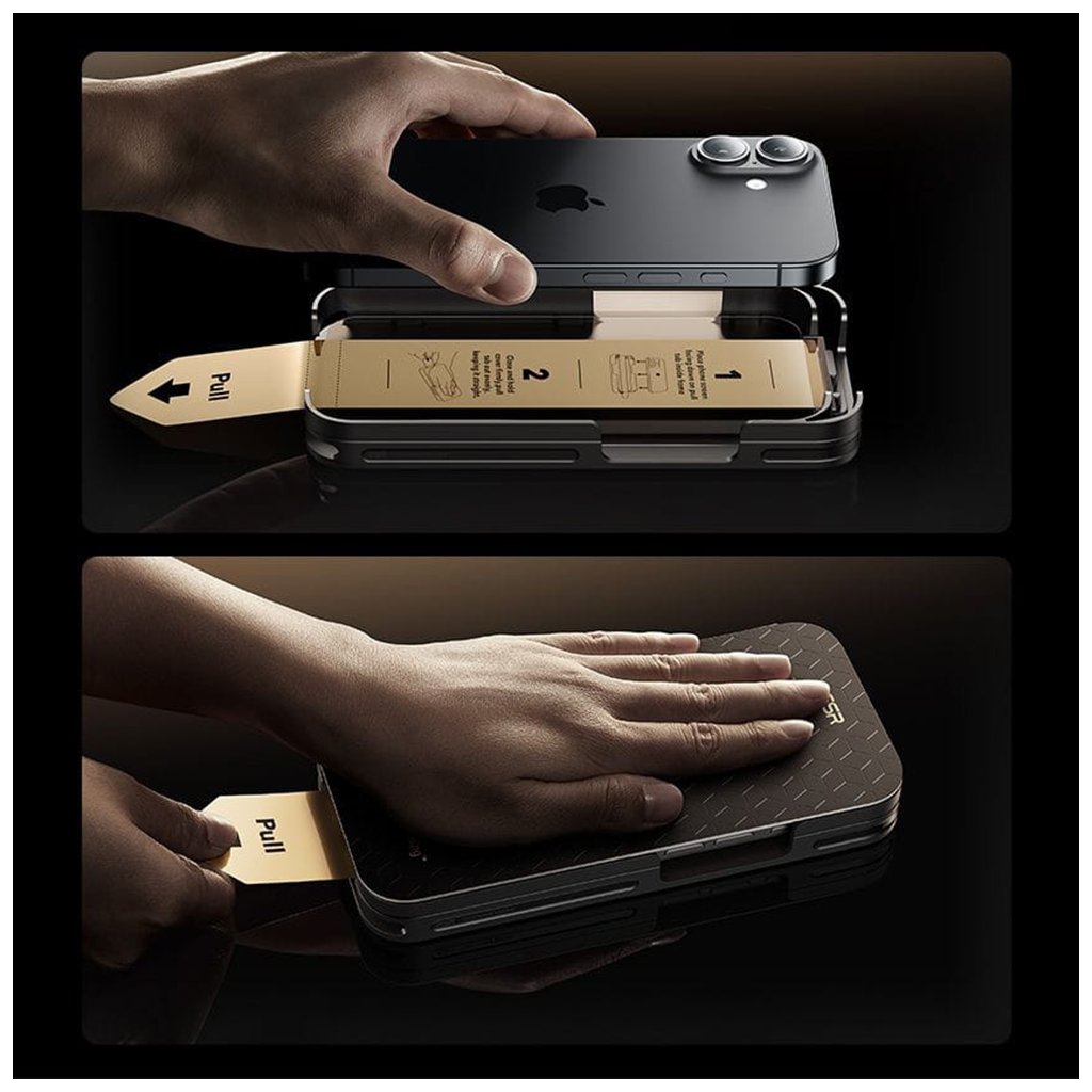 - Jednoduchá aplikácia: Priložený aplikačný rámček zaručuje ľahké, rýchle a presné nalepenie skla bez vzduchových bublín.