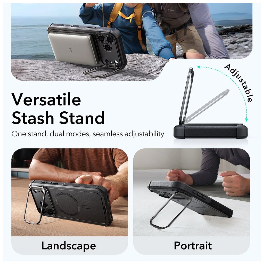 Predstavujeme **ESR Cyber Armor Kickstand** – špičkovú kombináciu robustnej ochrany a inovatívnej funkčnosti pre váš **iPhone 17 Pro Max**. Tento elegantný čierny kryt je navrhnutý tak, aby nielen chránil váš telefón pred každodennými nástrahami, ale aj výrazne zjednodušil jeho používanie.Dizajn a Ochrana, na Ktorú sa Môžete Spoľahnúť