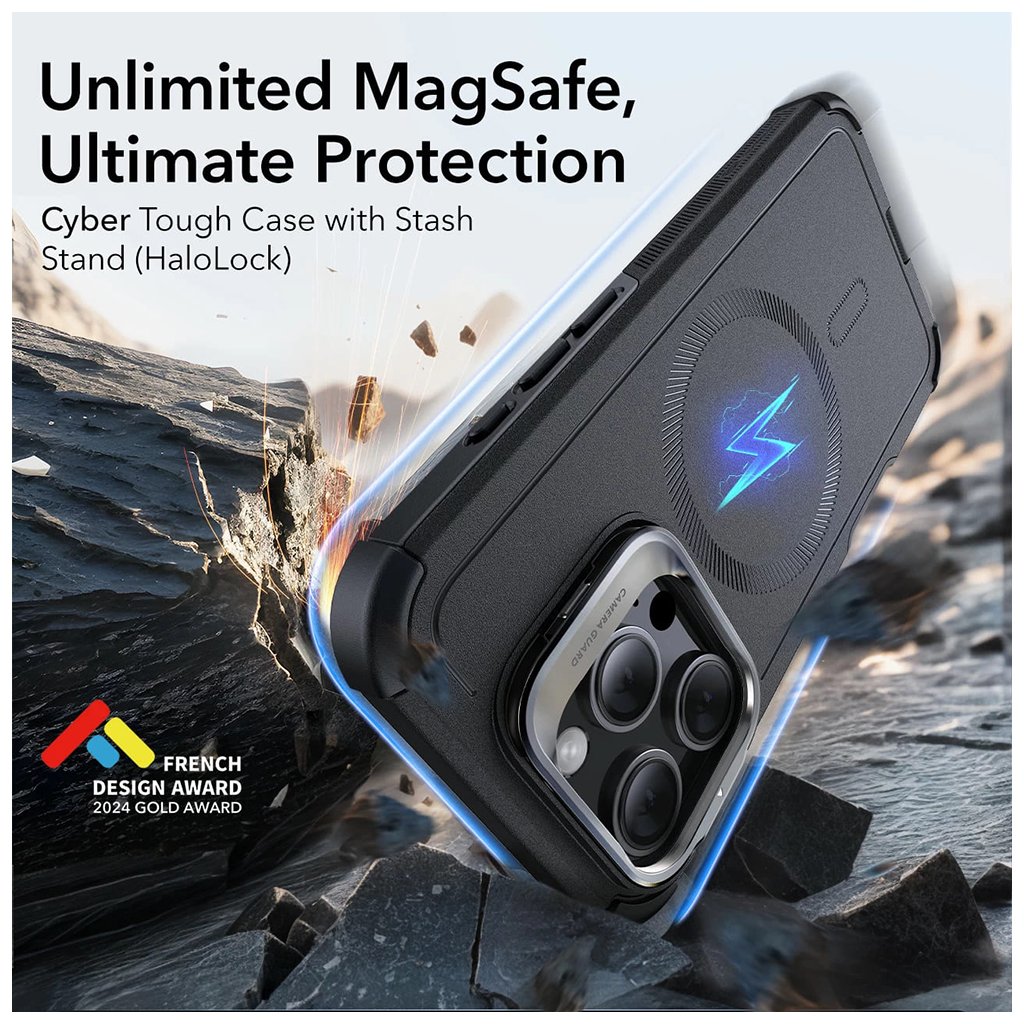 ESR Cyber Armor Kickstand pre iPhone 16 Pro Max sivý