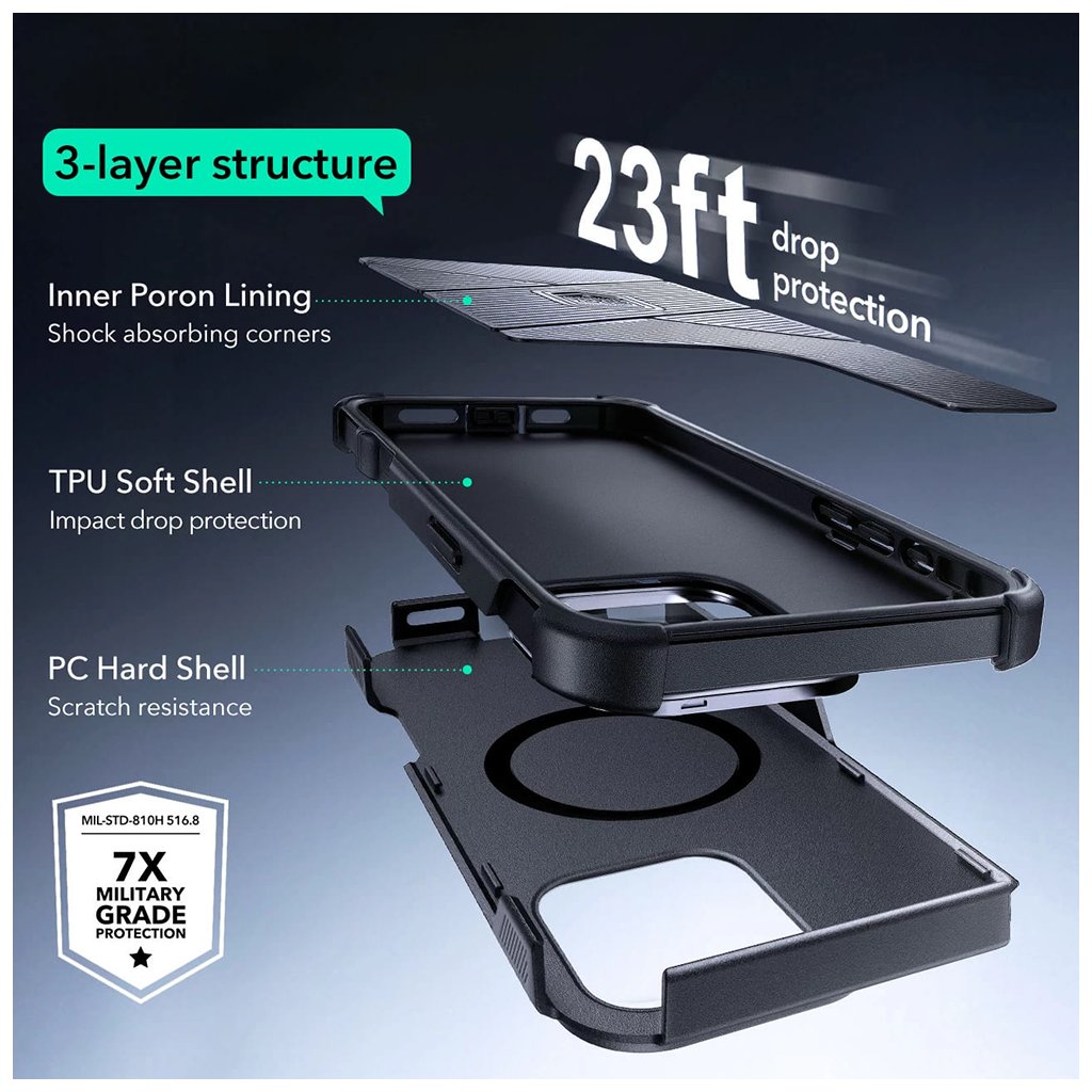 ESR je globálna technologická značka založená v roku 2009 s jasným poslaním: "Uľahčovať používanie technológií". Spoločnosť sa rýchlo stala jedným z popredných inovátorov v oblasti mobilného príslušenstva vďaka silnému zameraniu na výskum, vývoj a užívateľsky prívetivý dizajn. Hoci je ich portfólio široké, ESR sa preslávilo predovšetkým ako priekopník v ekosystéme MagSafe, kde nastavujú nové štandardy funkčnosti a spoľahlivosti. Kryty ESR sú navrhnuté s dôrazom na praktickosť. Ich absolútnou dominantou je patentovaný systém HaloLock™, ktorý predstavuje ekvivalent MagSafe, avšak často s výrazne silnejšími magnetmi pre bezpečnejšie uchytenie. Mnohé kryty ESR sa vyznačujú inovatívnymi integrovanými stojanmi – či už ide o rad Metal Kickstand s robustným kovovým stojanom alebo chytré riešenie stojana integrovaného okolo modulu fotoaparátu. Rad Armor, do ktorého spadá aj tento model, ponúka ešte robustnejšiu ochranu pre náročných užívateľov.