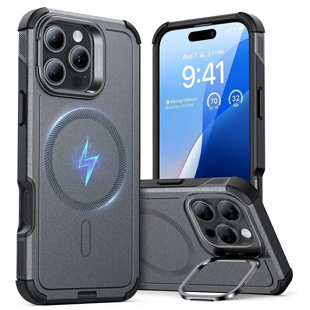 Predstavujeme ESR Cyber Armor Kickstand, prémiové ochranné puzdro navrhnuté špeciálne pre iPhone 16 Pro Max. Toto puzdro v elegantnej šedej farbe kombinuje robustnú ochranu s inovatívnou funkčnosťou, ktorá uľahčuje každodenné používanie vášho zariadenia.