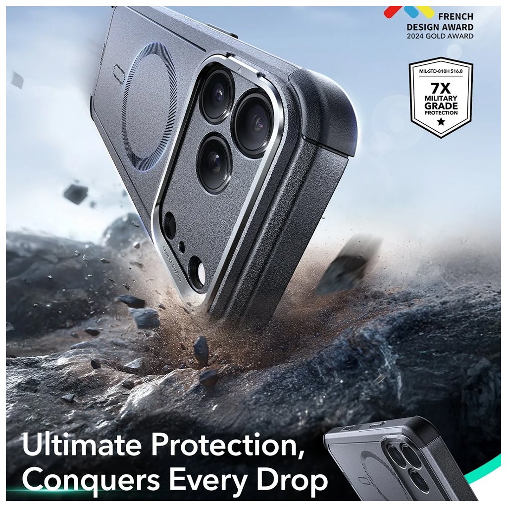 Integrovaný kovový stojan na zadnej strane umožňuje pohodlné sledovanie obsahu v horizontálnej polohe, čo je ideálne pre videohovory, sledovanie filmov alebo prezeranie receptov. Puzdro je plne kompatibilné s technológiou MagSafe, čo zaisťuje bezpečné a rýchle bezdrôtové nabíjanie a jednoduché pripojenie MagSafe príslušenstva. Vďaka patentovanému systému HaloLock™ od ESR získate ešte silnejšie magnetické spojenie, ktoré prekonáva štandardné MagSafe.Prečo si vybrať ESR Cyber Armor Kickstand?