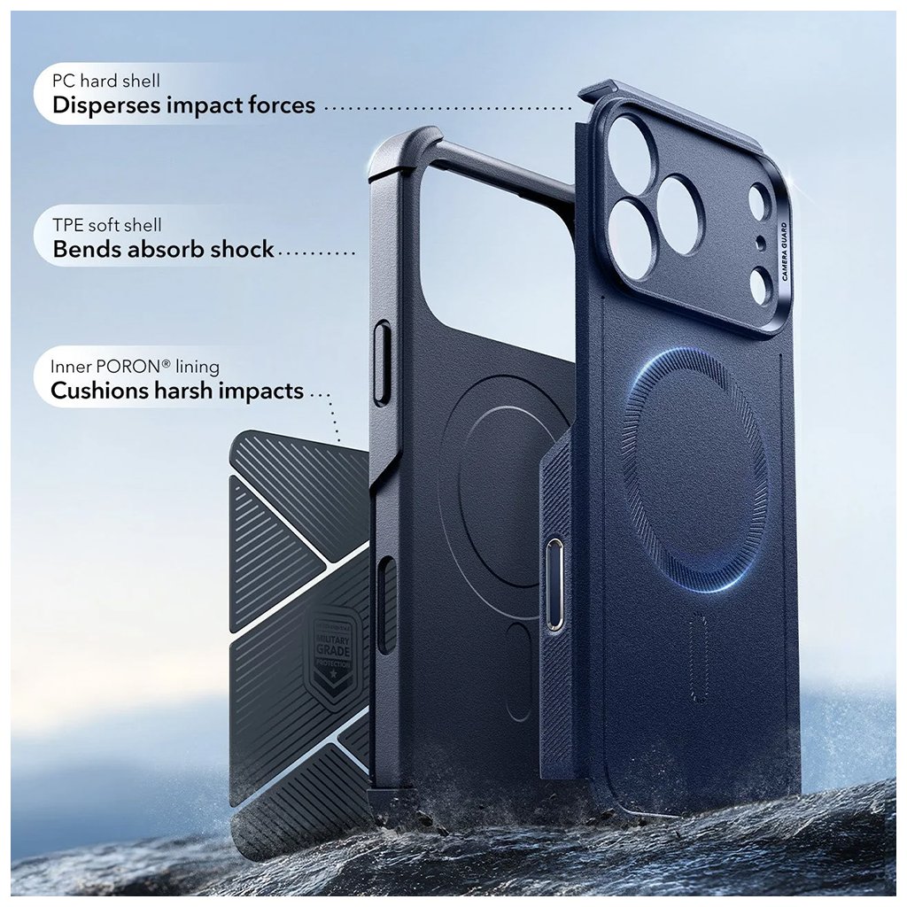 Představujeme ESR Cyber Halolock – špičkové ochranné puzdro navrhnuté špeciálne pre váš iPhone 17 Pro. Tento kryt v elegantnej modrej farbe kombinuje robustnú ochranu s inovatívnymi funkciami, ktoré posunú používanie vášho telefónu na novú úroveň.