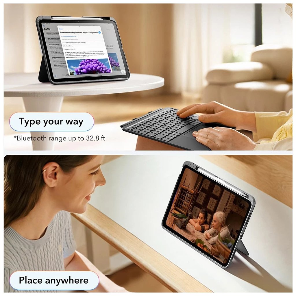 Zvýšte svoju produktivitu s ESR Flex Keyboard Case, elegantným a praktickým krytom s klávesnicou, ktorý transformuje váš iPad na plnohodnotnú pracovnú stanicu. Tento inovatívny produkt je navrhnutý tak, aby poskytoval maximálnu flexibilitu a ochranu, či už pracujete, študujete alebo tvoríte.