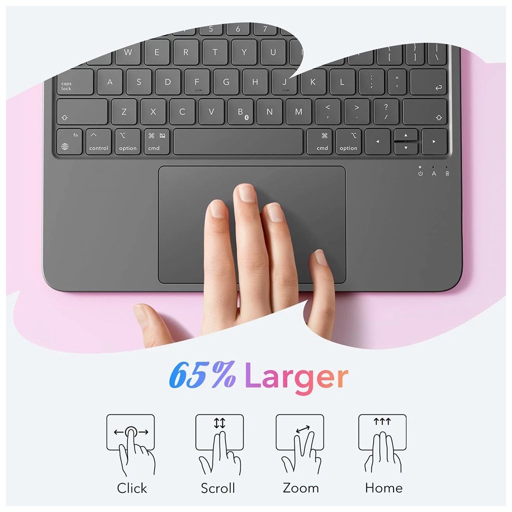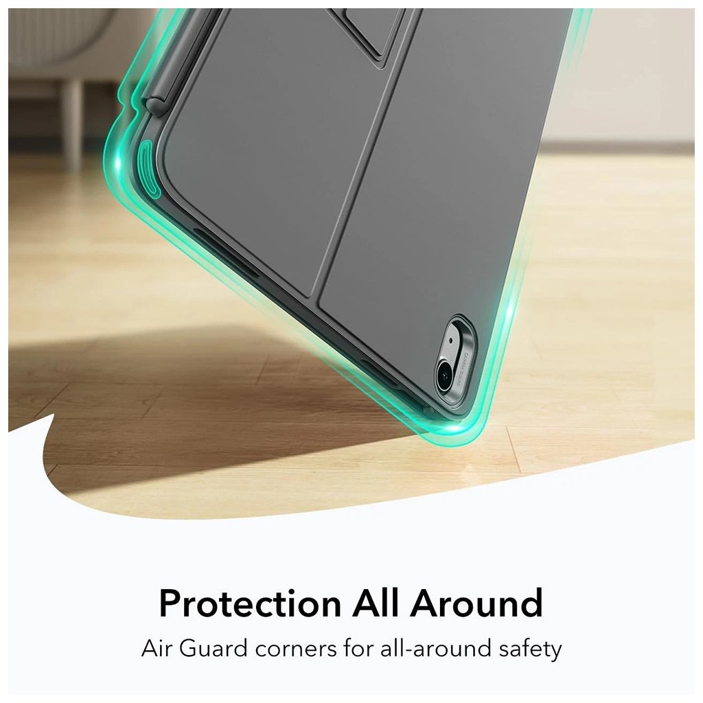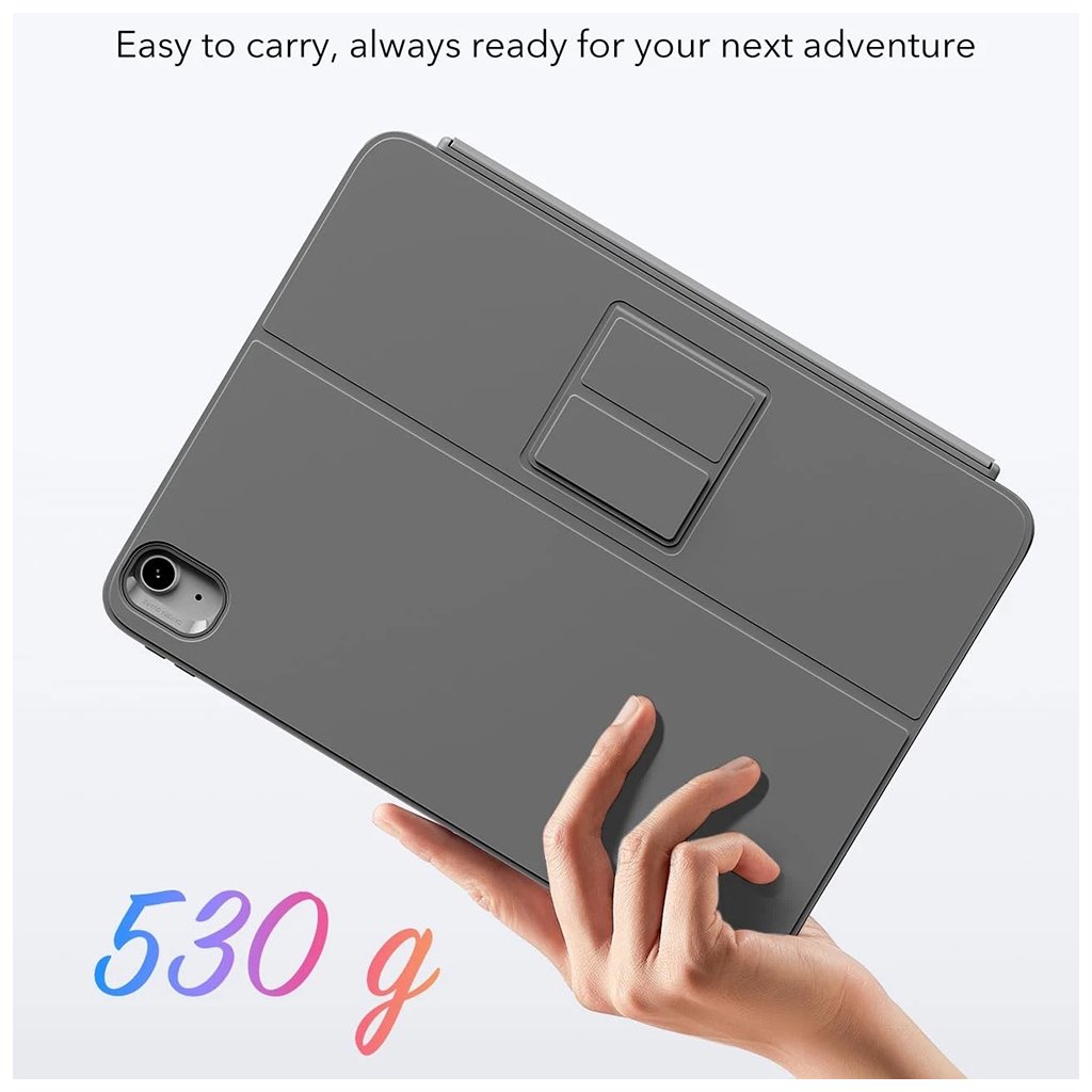 ESR Flex Keyboard Case sa pýši minimalistickým a sofistikovaným dizajnom, ktorý dokonale dopĺňa estetiku vášho iPadu. Tmavo šedé prevedenie dodáva krytu profesionálny a nadčasový vzhľad. Medzi jeho výhody patrí:
