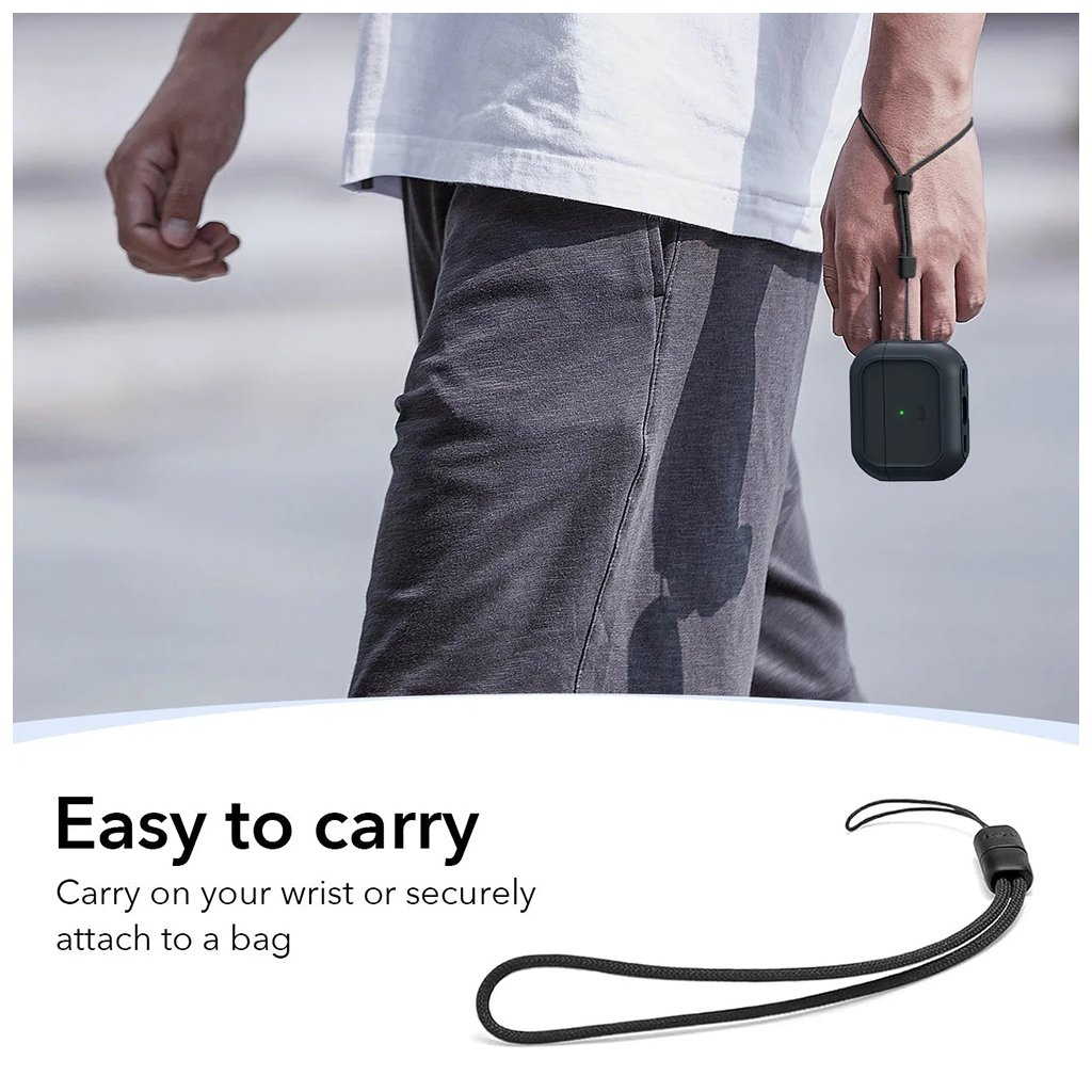 - Elegantný čierny dizajn: Minimalistický vzhľad v čiernej farbe, ktorý doplňuje sofistikovanosť vašich AirPods Pro 3.