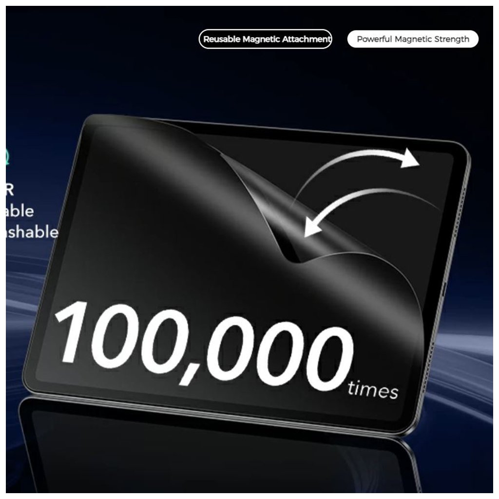 Vďaka pokročilej magnetickej technológii sa fólia ľahko a pevne prichytí k displeju vášho iPadu, čo zaisťuje rýchlu inštaláciu bez bublín a rovnako ľahké odobratie. Užite si slobodu opakovaného použitia – fóliu môžete kedykoľkoľvek zložiť, vyčistiť a znova pripevniť bez toho, aby zanechala akékoľvek stopy alebo poškodila displej.