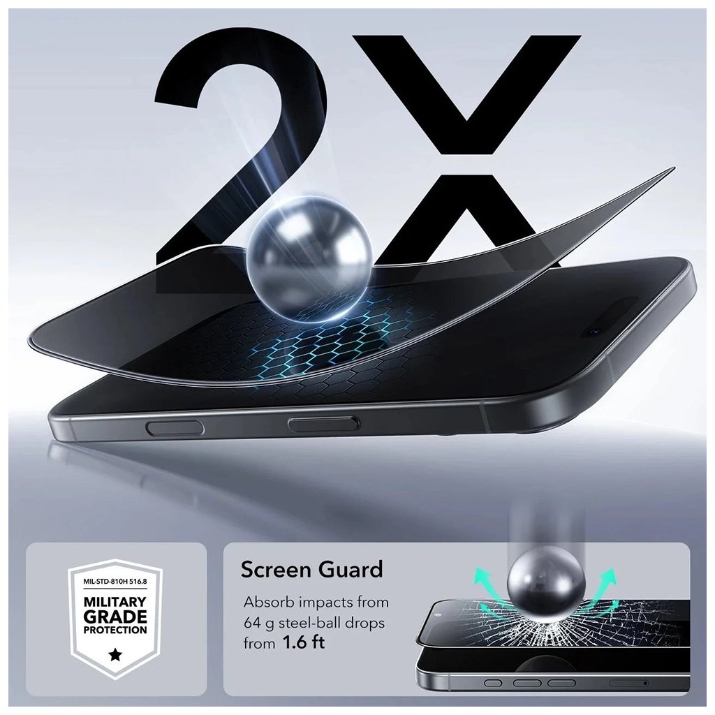 - Precízne spracovanie: Sklo ESR Privacy Tempered Glass UltraFit sa vyznačuje čiernym rámčekom, ktorý sa dokonale integruje s rámčekom displeja vášho iPhone 17 Pro, čím zaisťuje celoobrazovkové pokrytie a nenarušuje estetiku zariadenia.