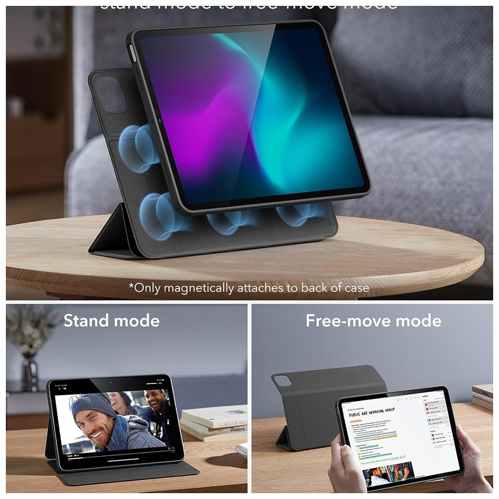 Puzdro ESR Rebound Hybrid sa pýši minimalistickým a zároveň premysleným dizajnom. Jeho vonkajšia strana je vyrobená z odolného materiálu, ktorý je príjemný na dotyk a zároveň efektívne chráni pred poškriabaním a drobnými nárazmi. Vnútorná strana je potiahnutá mäkkou mikrovláknovou podšívkou, ktorá chráni displej vášho iPadu pred poškriabaním. Precízne výrezy zaisťujú ľahký prístup ku všetkým portom, tlačidlám a kamere, bez toho, aby bolo potrebné puzdro dávať dole. Vďaka štíhlemu profilu puzdro nepridáva iPadu zbytočný objem a zachováva jeho elegantný vzhľad.