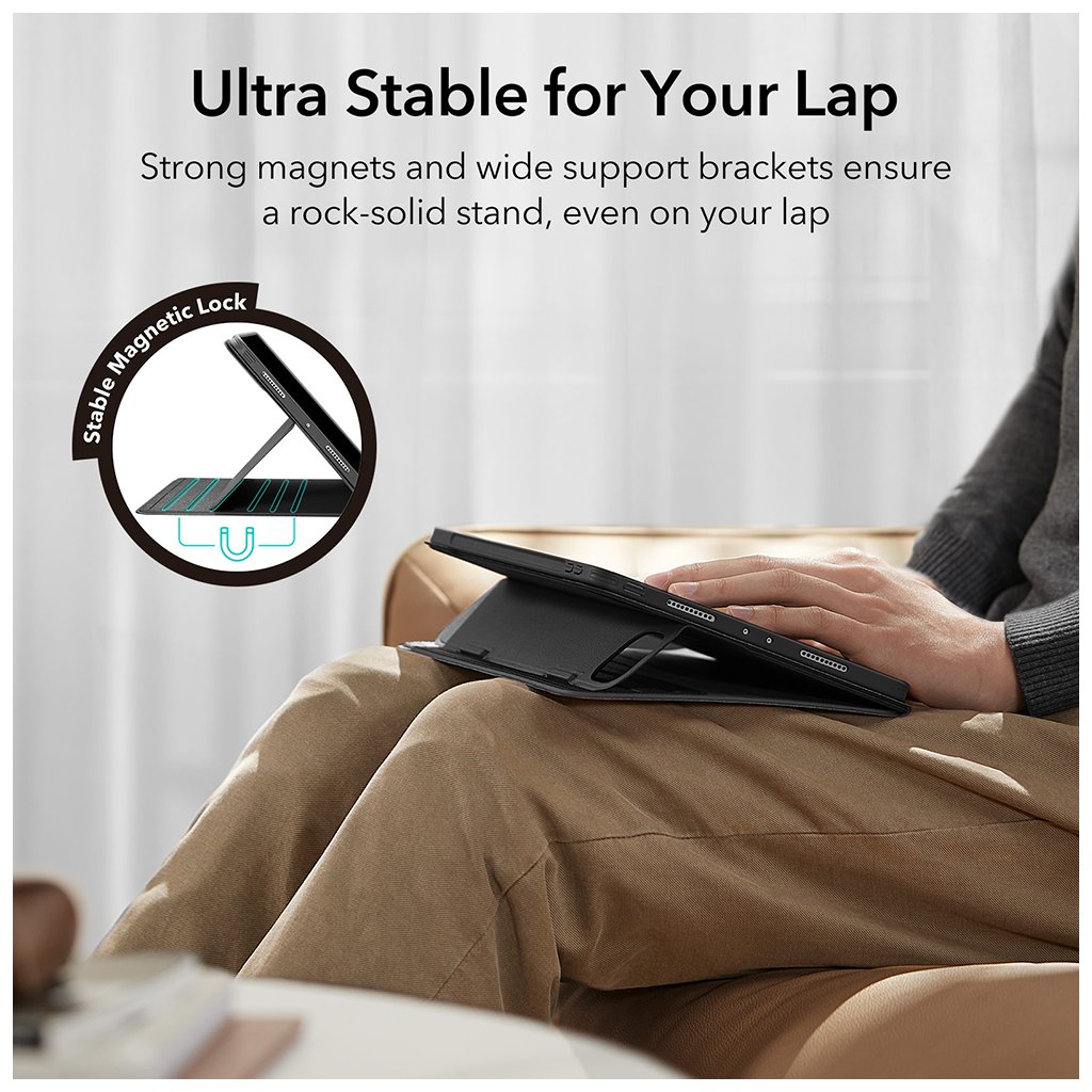 - Odnímateľný magnetický kryt: Kryt je možné ľahko odňať, čo zvyšuje flexibilitu a umožňuje vám používať iPad s minimálnym objemom.
