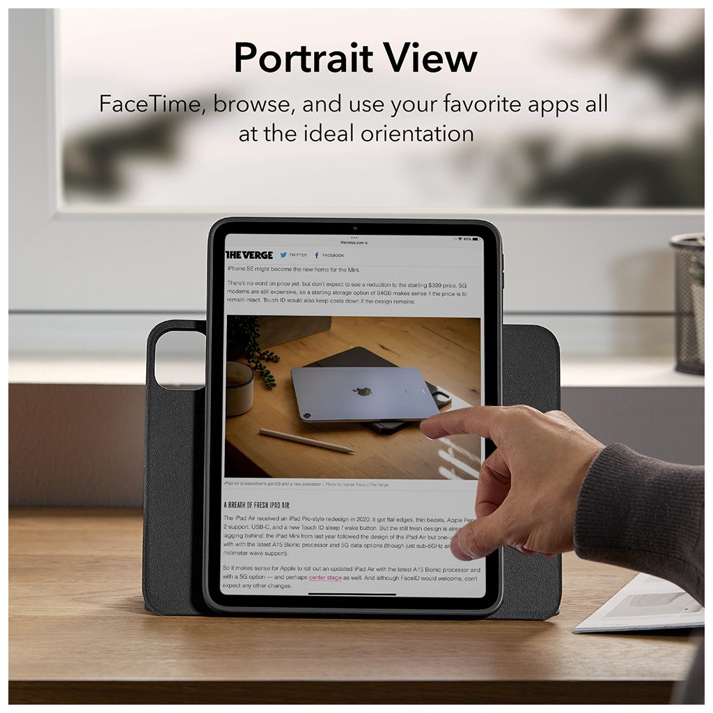 - Zvýšený uhol pohľadu: Puzdro umožňuje zvýšiť displej o 8,5 cm, čo vám poskytne úplne nový a pohodlnejší pohľad na váš iPad.