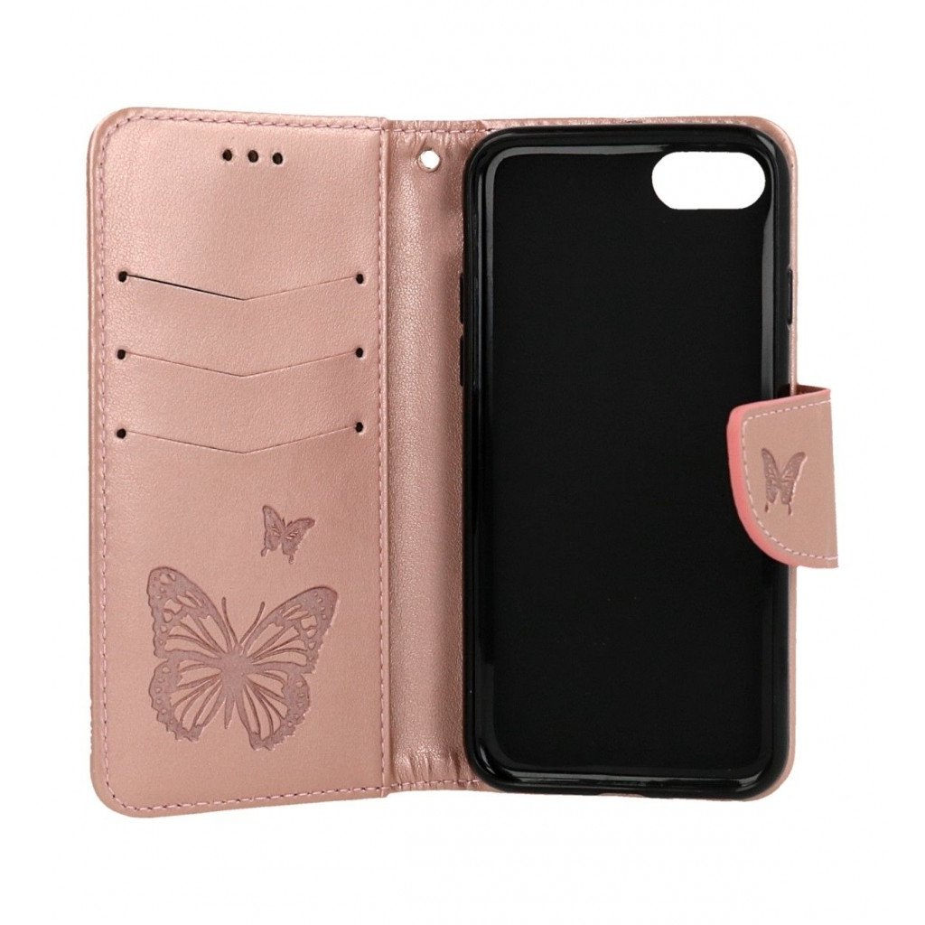 Flipové púzdro na iPhone SE 2022 Butterfly - Ružové Svetlé