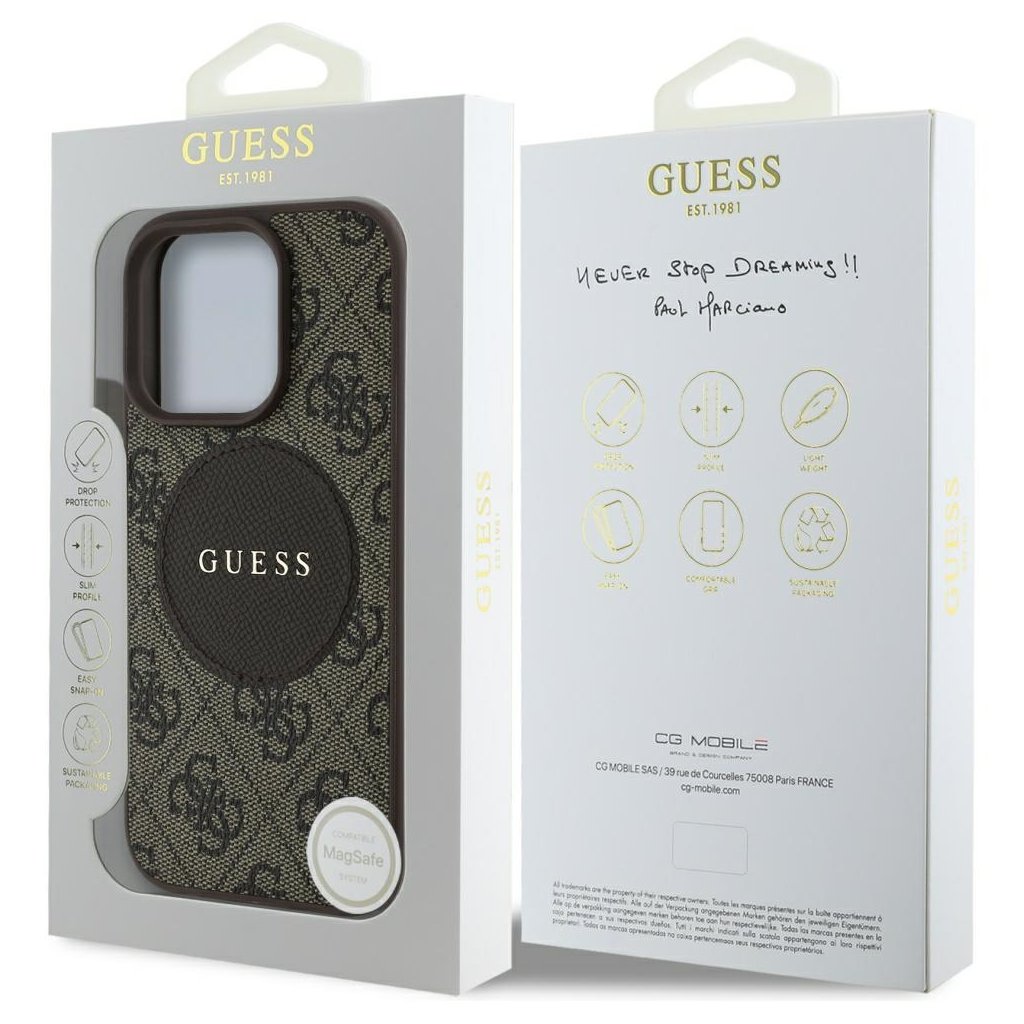 Guess 4G Circle Classic Logo MagSafe iPhone 16 Pro Hnedé puzdro