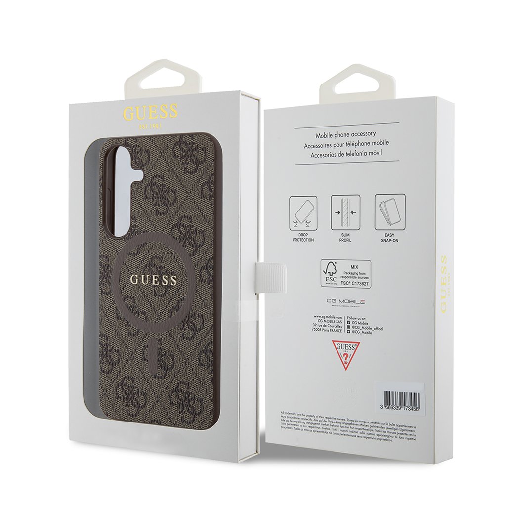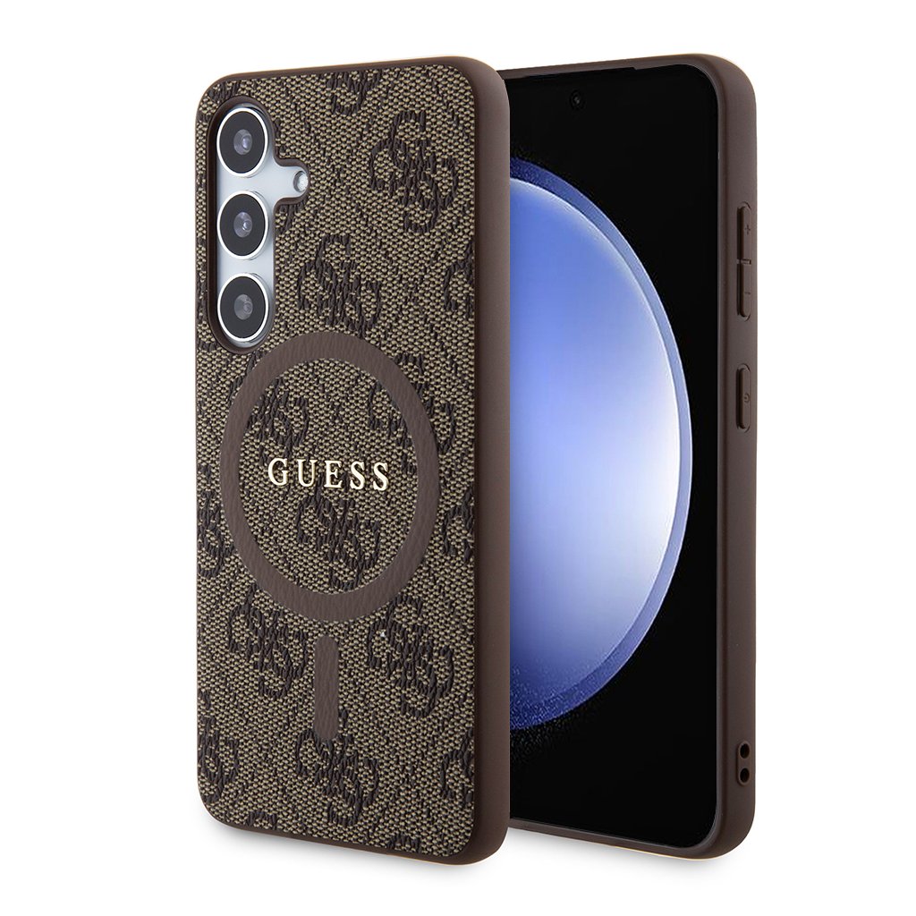 Guess 4G Collection Leather MagSafe pre Samsung Galaxy S24 Plus – hnedá