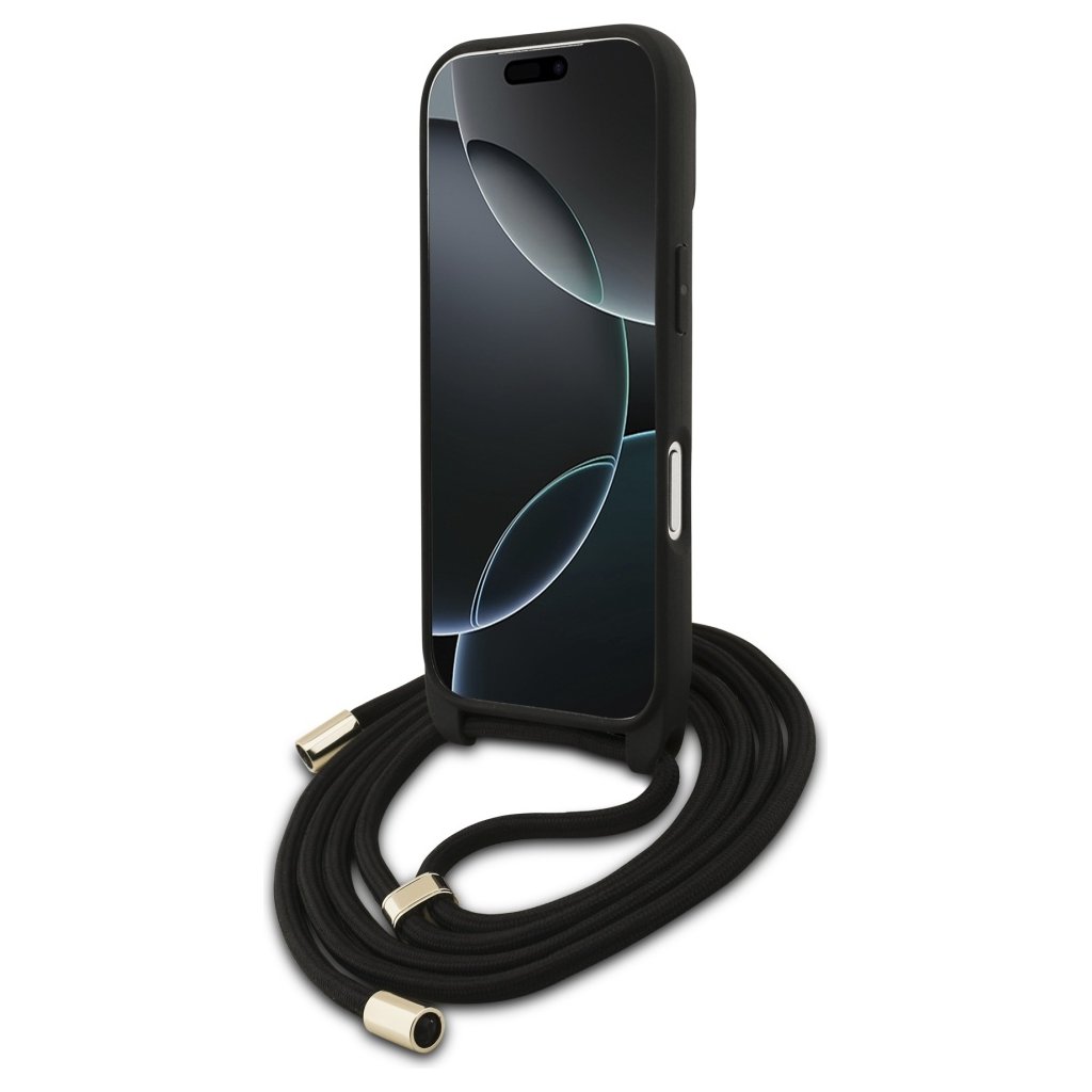 Najväčšou prednosťou tohto modelu je integrovaná crossbody šnúrka v čiernej farbe, ktorá umožňuje pohodlné nosenie telefónu cez rameno alebo okolo krku. Vďaka tomu budete mať svoj iPhone 17 Pro vždy po ruke a zároveň voľné ruky. Šnúrka je vybavená elegantnými kovovými detailmi v zlatej farbe s vyrytým logom Guess, ktoré slúži aj k nastaveniu dĺžky. Puzdro je navrhnuté tak, aby poskytovalo spoľahlivú ochranu proti poškriabaniu, drobným nárazom a nečistotám, zatiaľ čo precízne výrezy zabezpečujú jednoduchý prístup ku všetkým portom a tlačidlám.