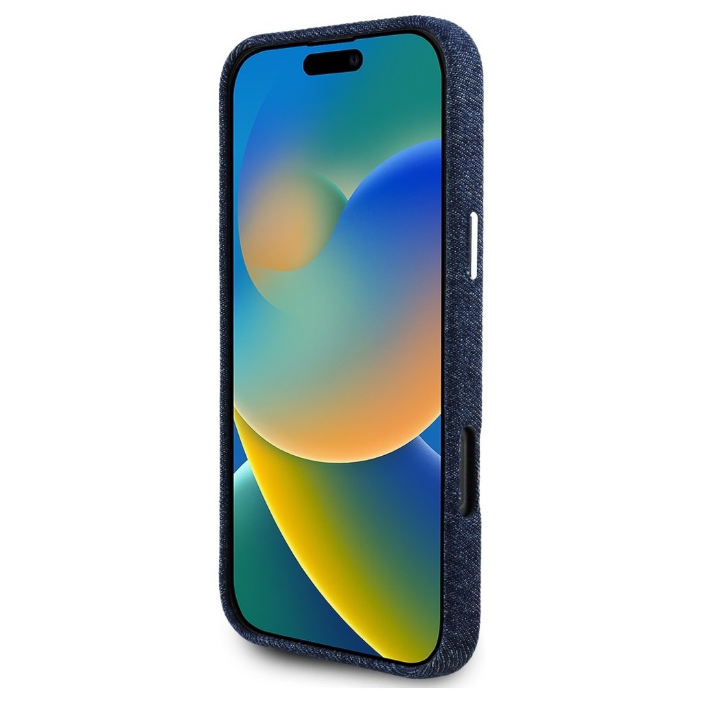 Guess Denim Triangle Logo MagSafe pre iPhone 16 Pro modrý