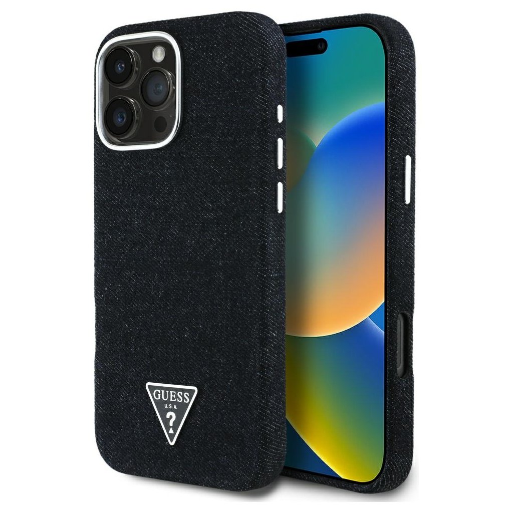 Guess Denim Trojuholníkové Logo MagSafe iPhone 16 Pro Max čierny