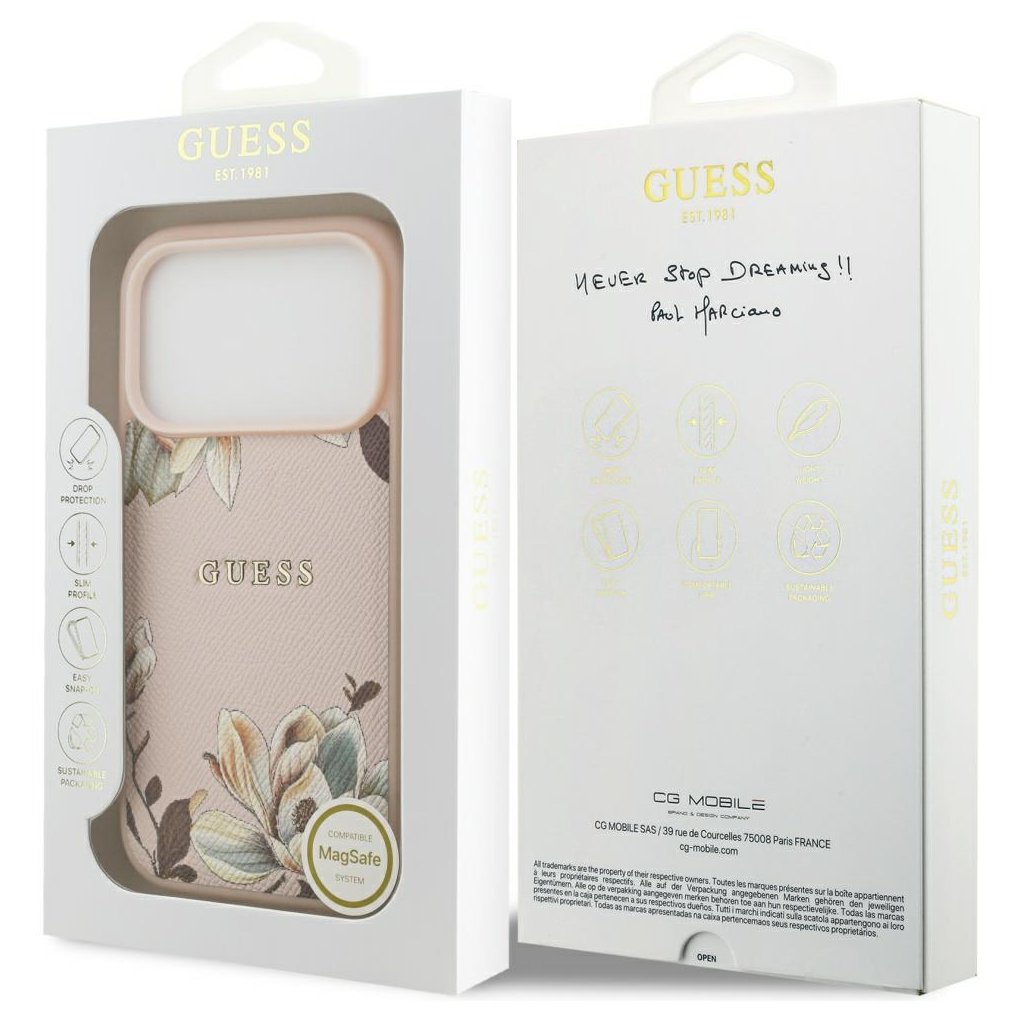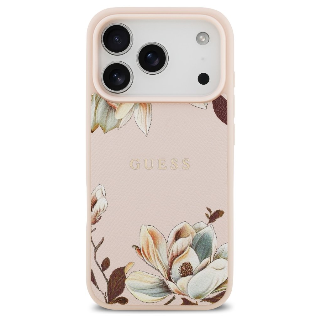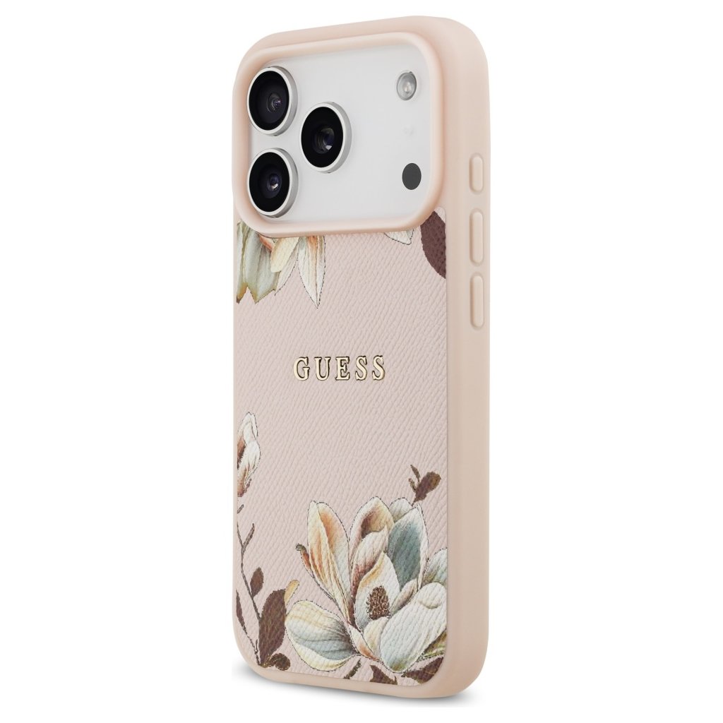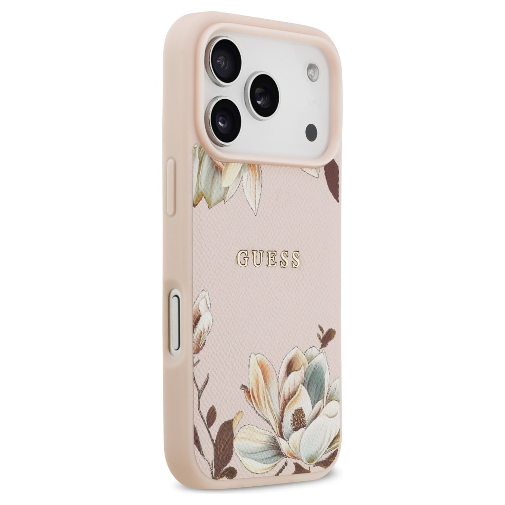 Guess Grained Flowers MagSafe pre iPhone 17 Pro Max – Ružová