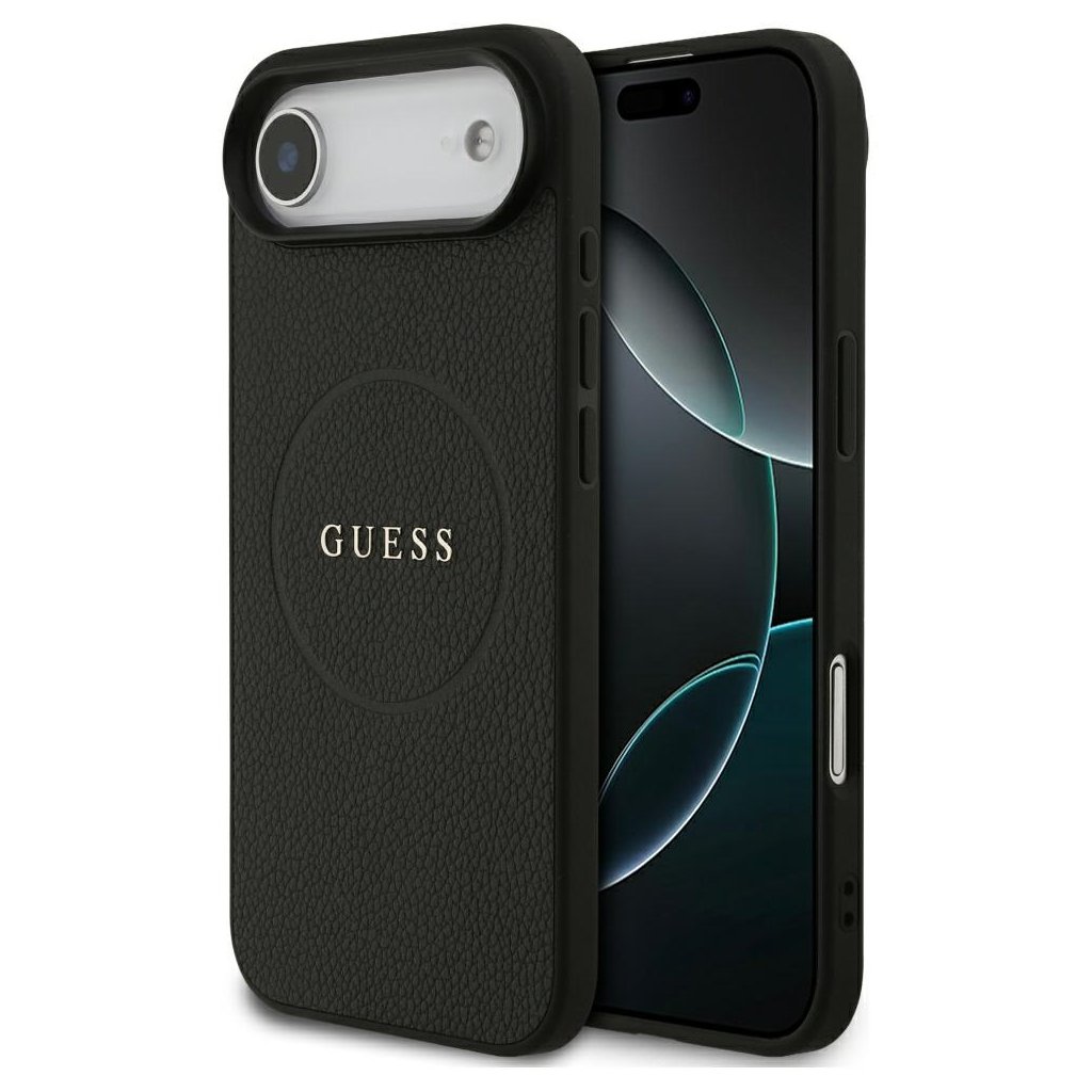 Guess Grained Gold Ring Magsafe Puzdro iPhone 17 Air Čierny