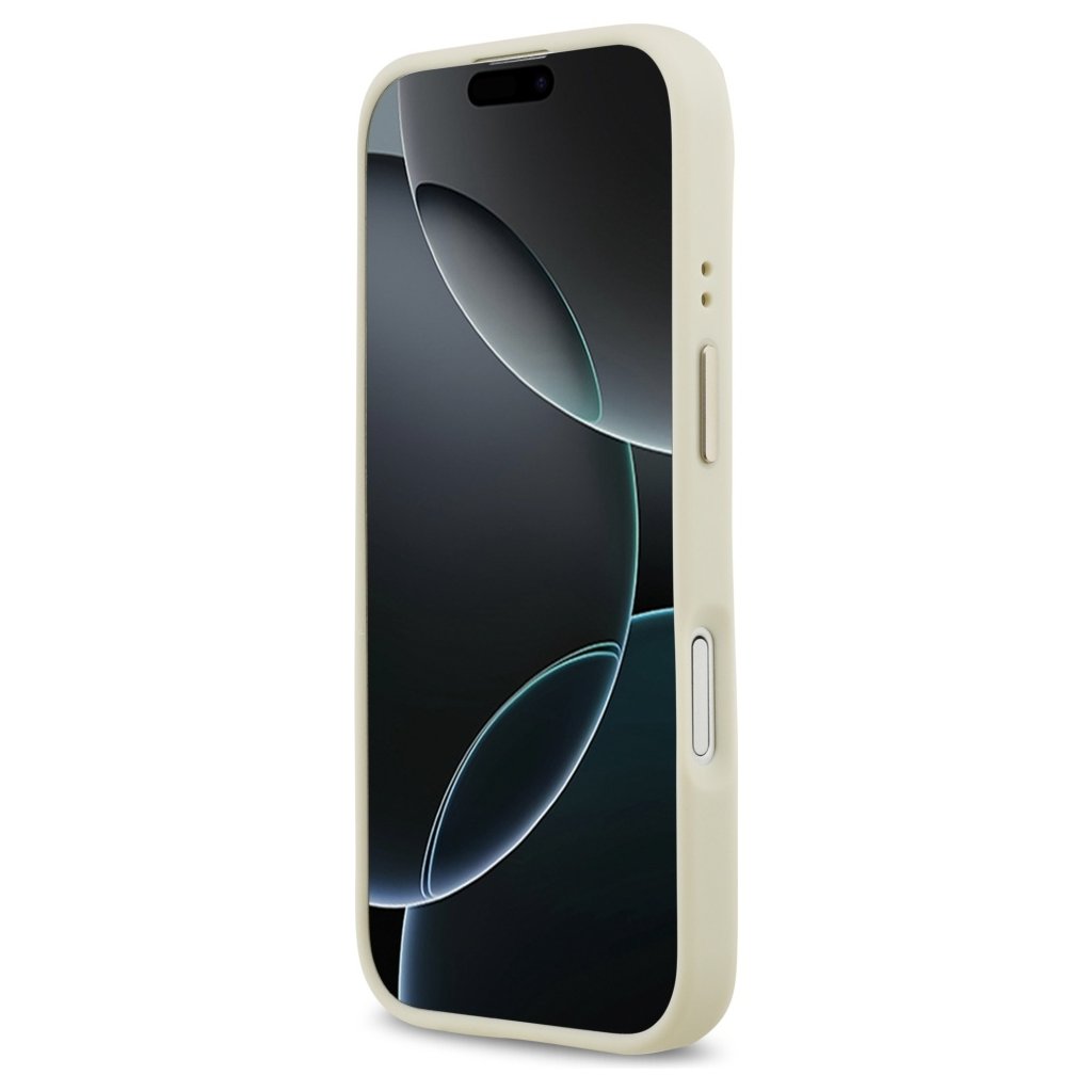 Guess Grained Strass Logo MagSafe pre iPhone 17 béžové puzdro
