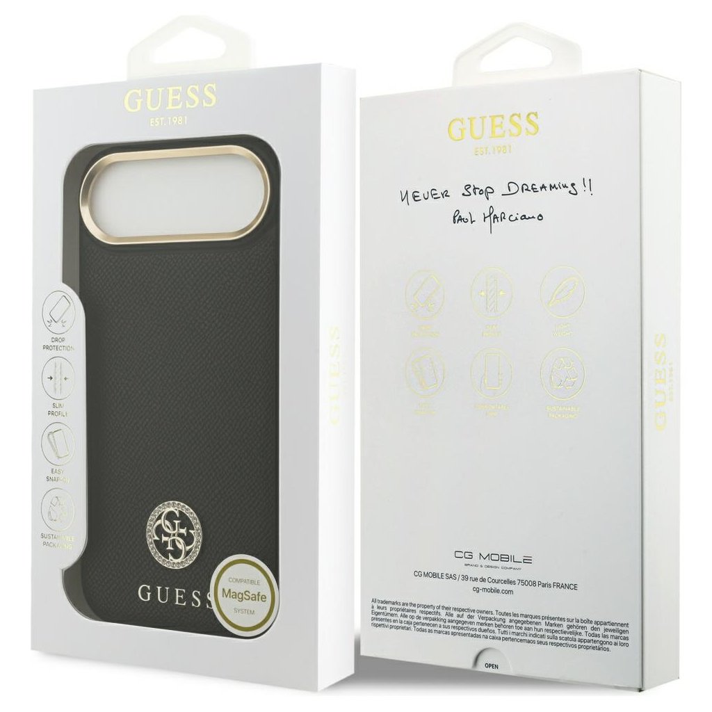 Guess Grained Strass Logo MagSafe puzdro iPhone 17 Air čierne