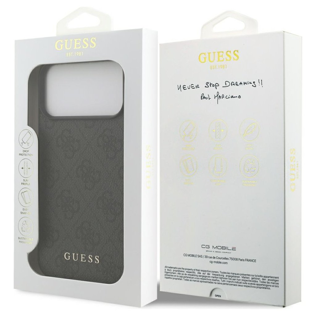 Predstavujeme exkluzívne ochranné puzdro **Guess Hardcase 4G Classic**, ktoré je navrhnuté tak, aby dokonale doplnilo váš iPhone 17 Pro Max. Toto puzdro nie je len ochranou, ale predovšetkým štýlovým doplnkom, ktorý podčiarkne váš osobitý vkus a eleganciu.Ikonický dizajn a prémiové spracovanie